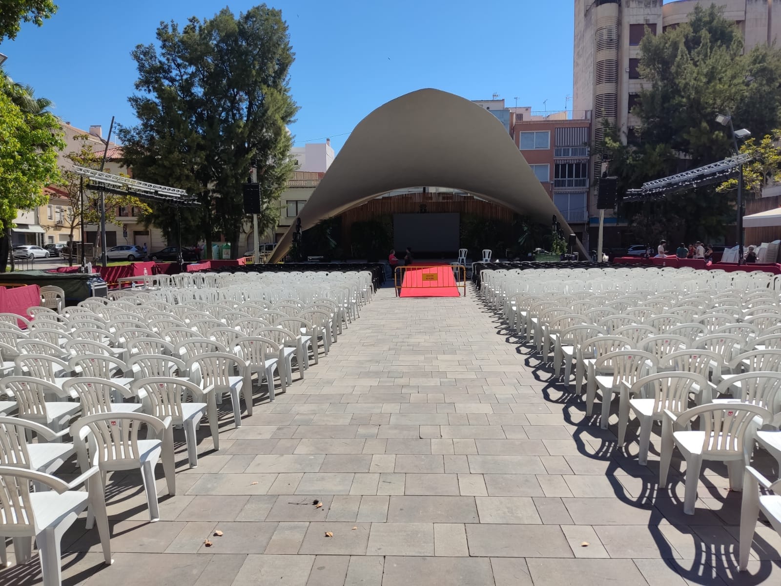 La concha de la Plaza Castelar luce preciosa para recibir a las falleras mayores de Elda 2019 y sus damas de honor, que hoy pondrán punto y final a su cargo.