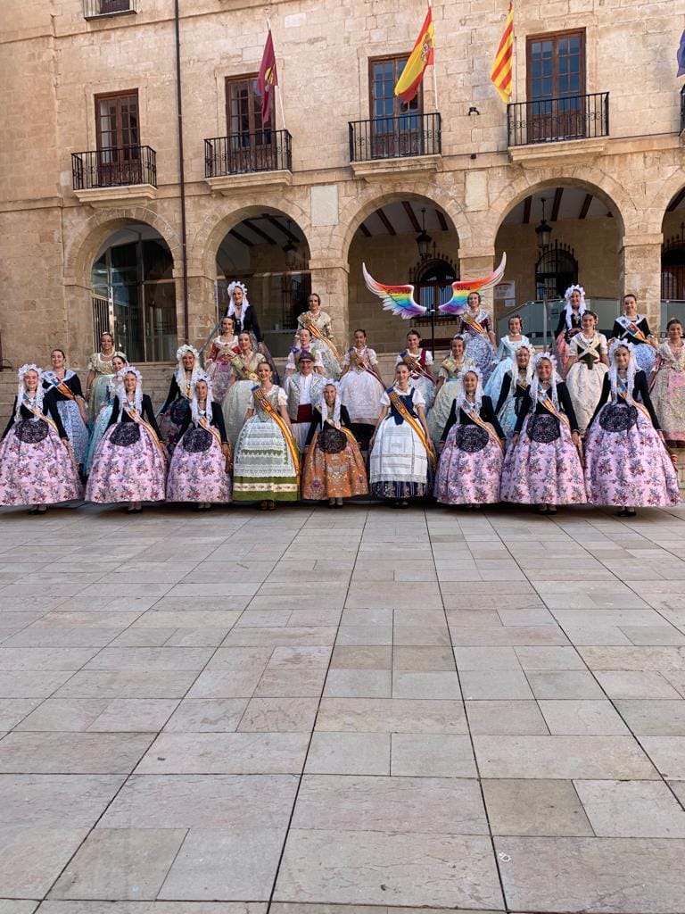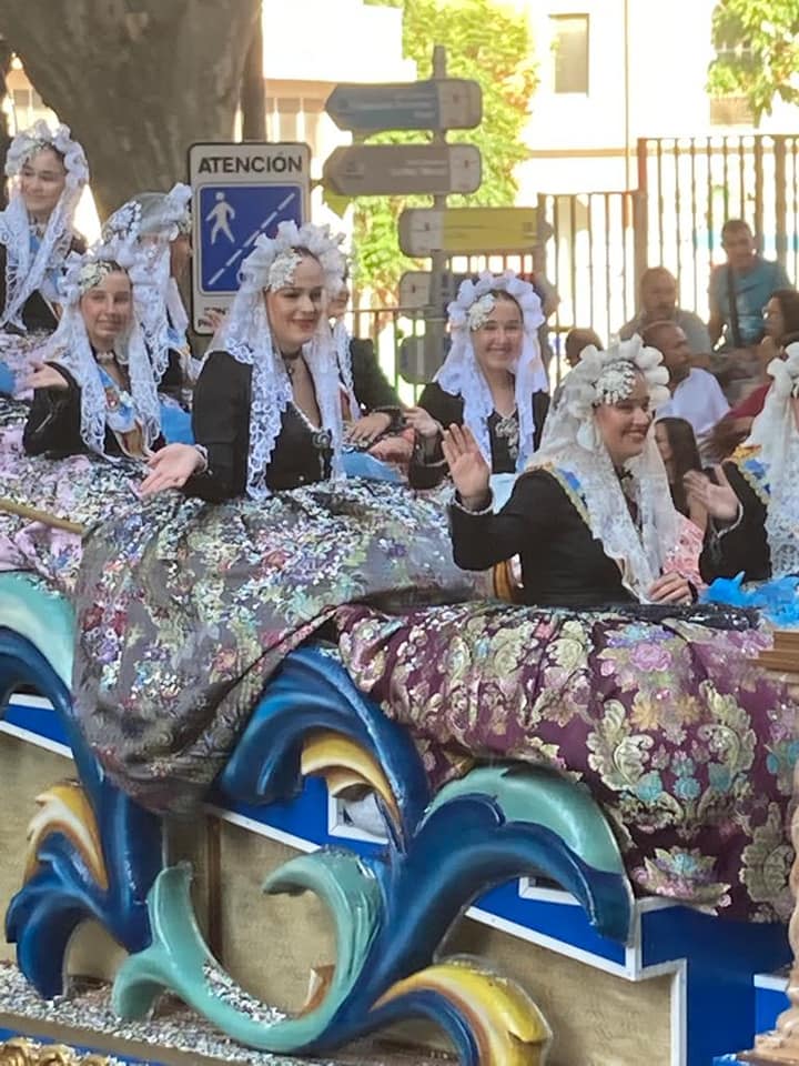 Hoy sábado, las Falleras mayores de Elda Lucía e Imara, junto a la presidenta de junta gestora, han acudido a la ciudad de Dénia, para participar en su tradicional desfile de carrozas.