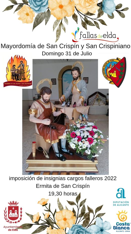 Acto de imposición de insignias a los cargos falleros 2022 de las Fallas de Elda a cargo de la Mayordomía de San Crispin y San Crispiniano,en su ermita del parque de San Crispín.