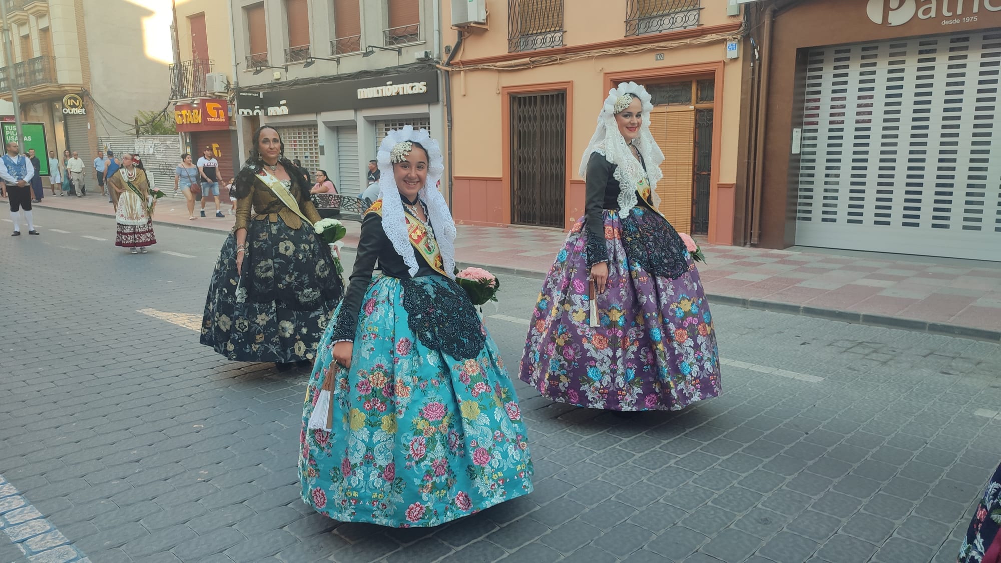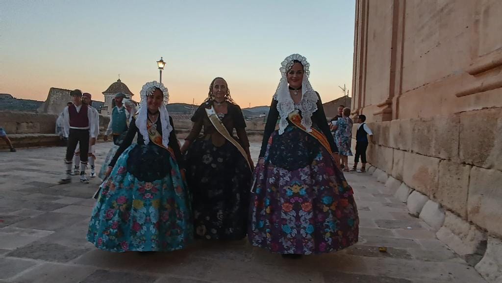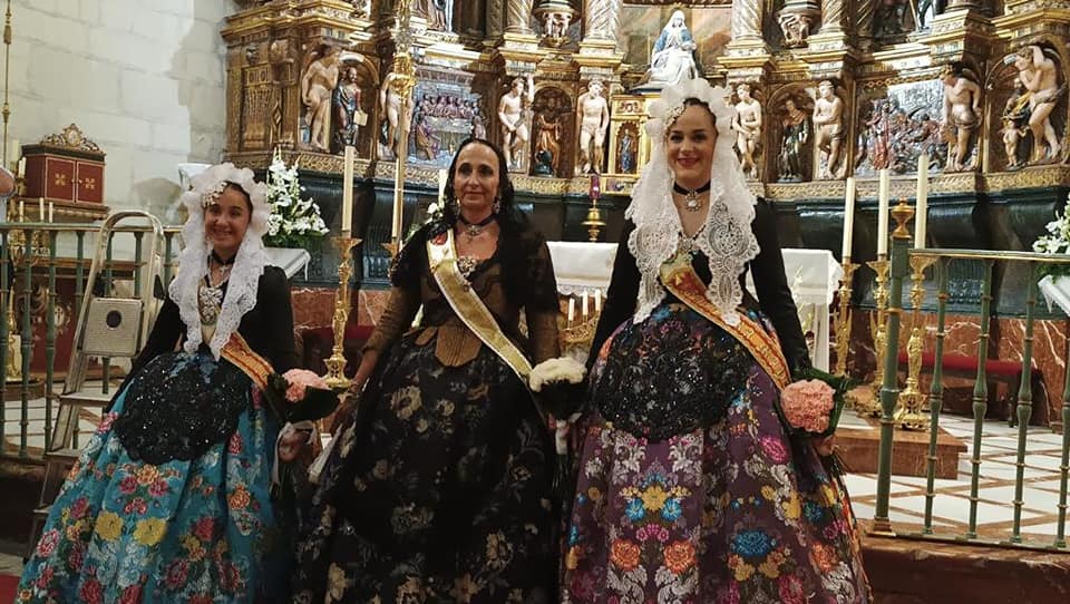 Domingo 7 de agosto, Lucía e Imara falleras mayores de Elda, junto a la presidenta de Junta Gestora, acudieron a las fiestas de Jumilla, dónde participaron en su ofrenda de flores.