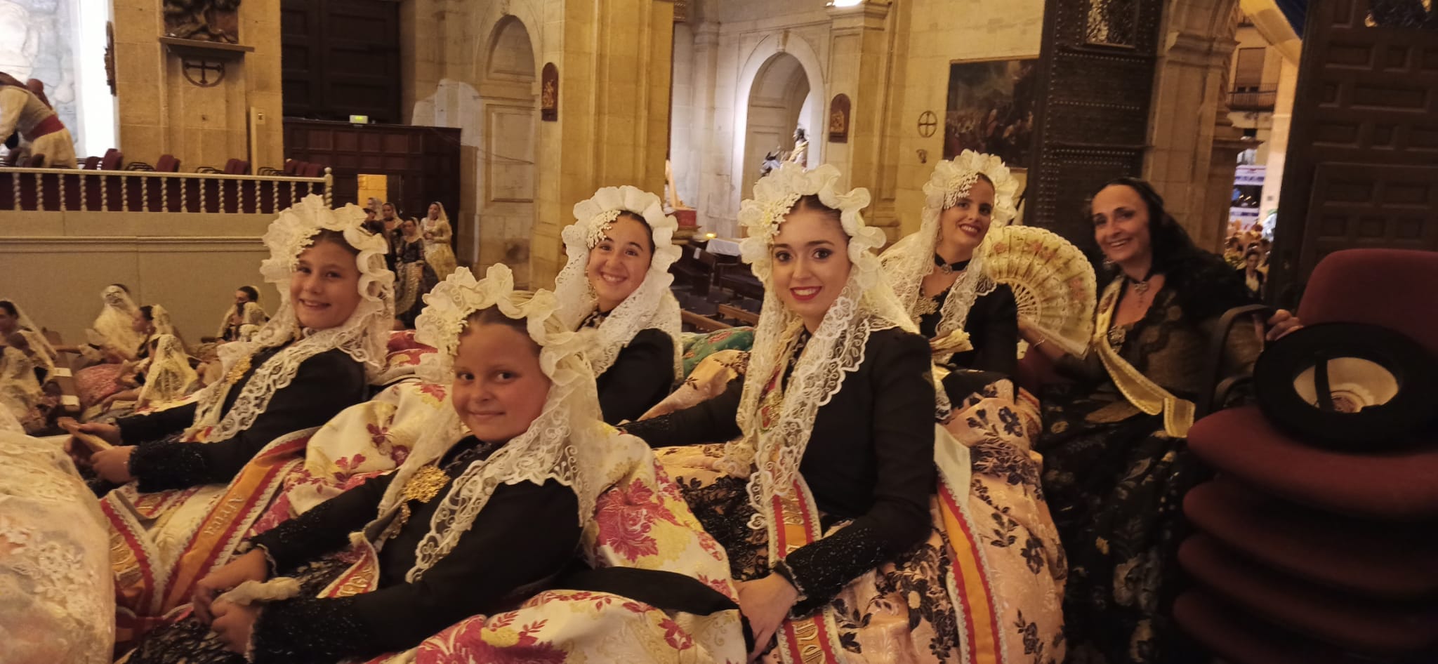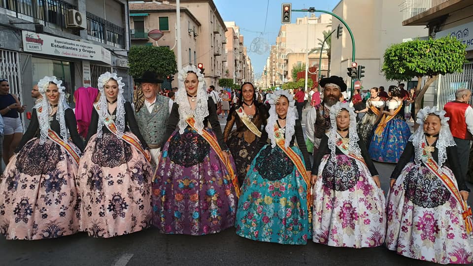Nuestras falleras mayores de Elda y sus damas de honor, acompañadas por junta gestora, han estado en las fiestas de Elche, participando en su ofrenda de flores.