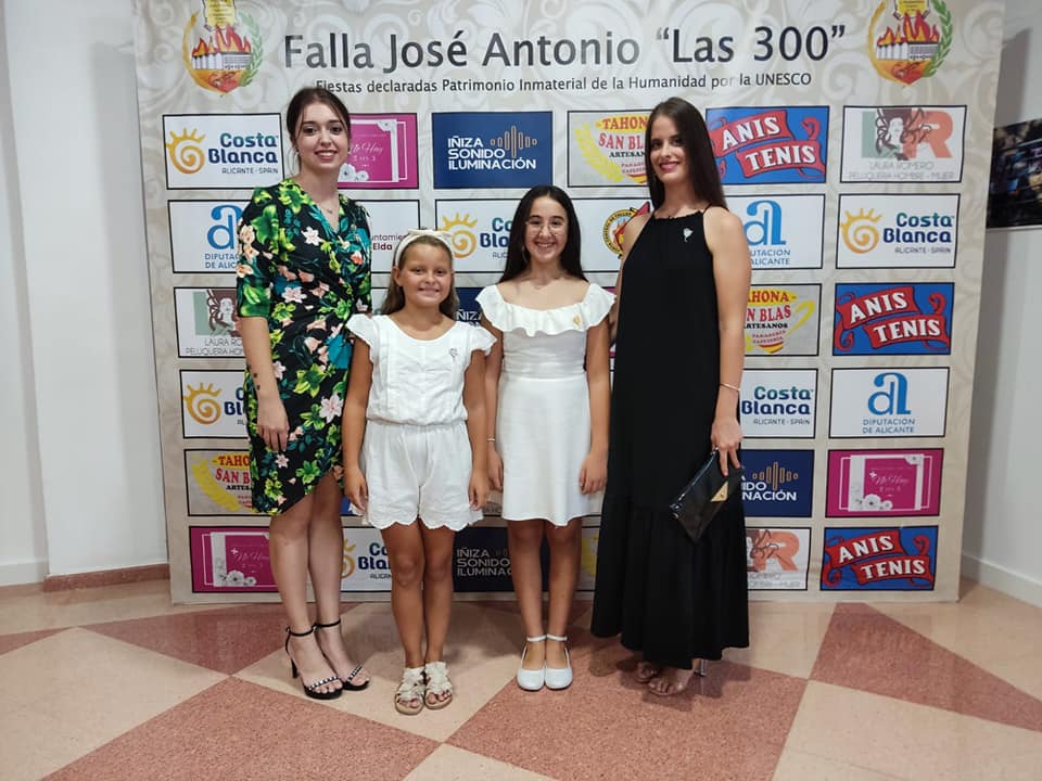 Imara Fallera mayor infantil de Elda, las damas de honor de las falleras mayores de Elda, acompañadas por Isabel presidenta de la Junta Gestora de Fallas, han asistido en la Fundación Paurides al acto de la presentación del llibret de la Falla José Antonio Las Trescientas.