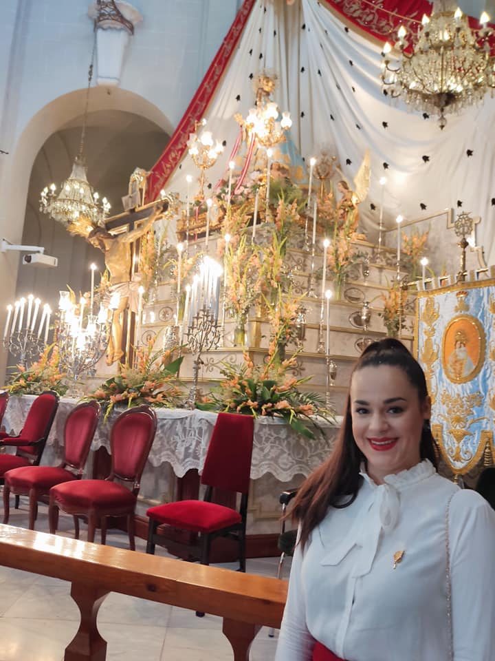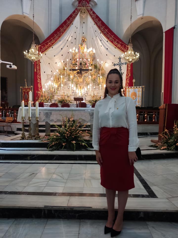 Lucía, nuestra fallera mayor de Elda, ha acudido a la misa mayor en honor al Santísimo Cristo del Buen Suceso, con motivo de las fiestas mayores de la ciudad. Ha ido acompañada por Juan J. de junta gestora.
