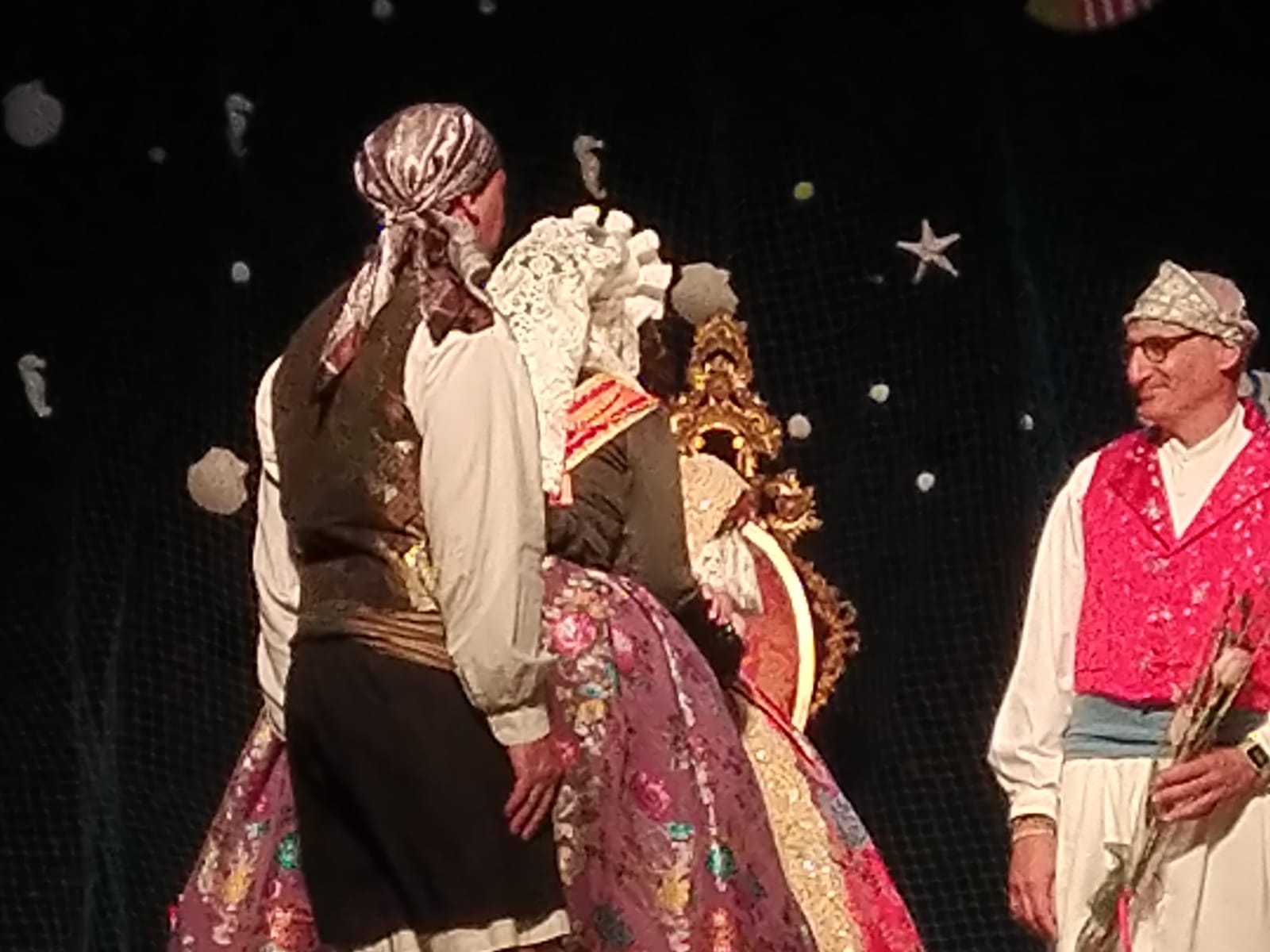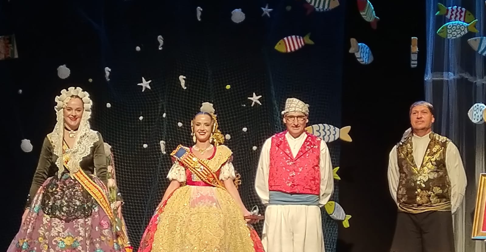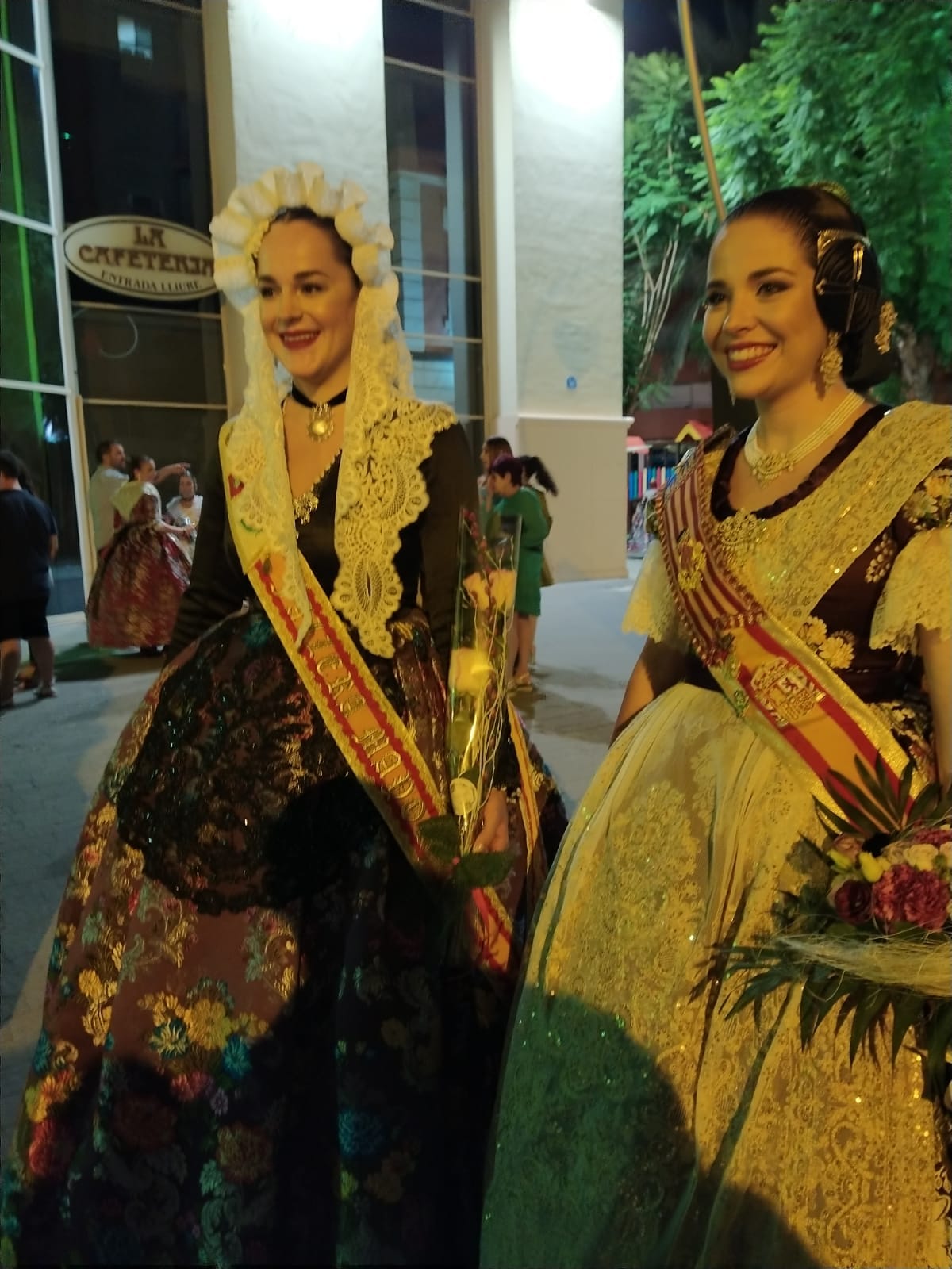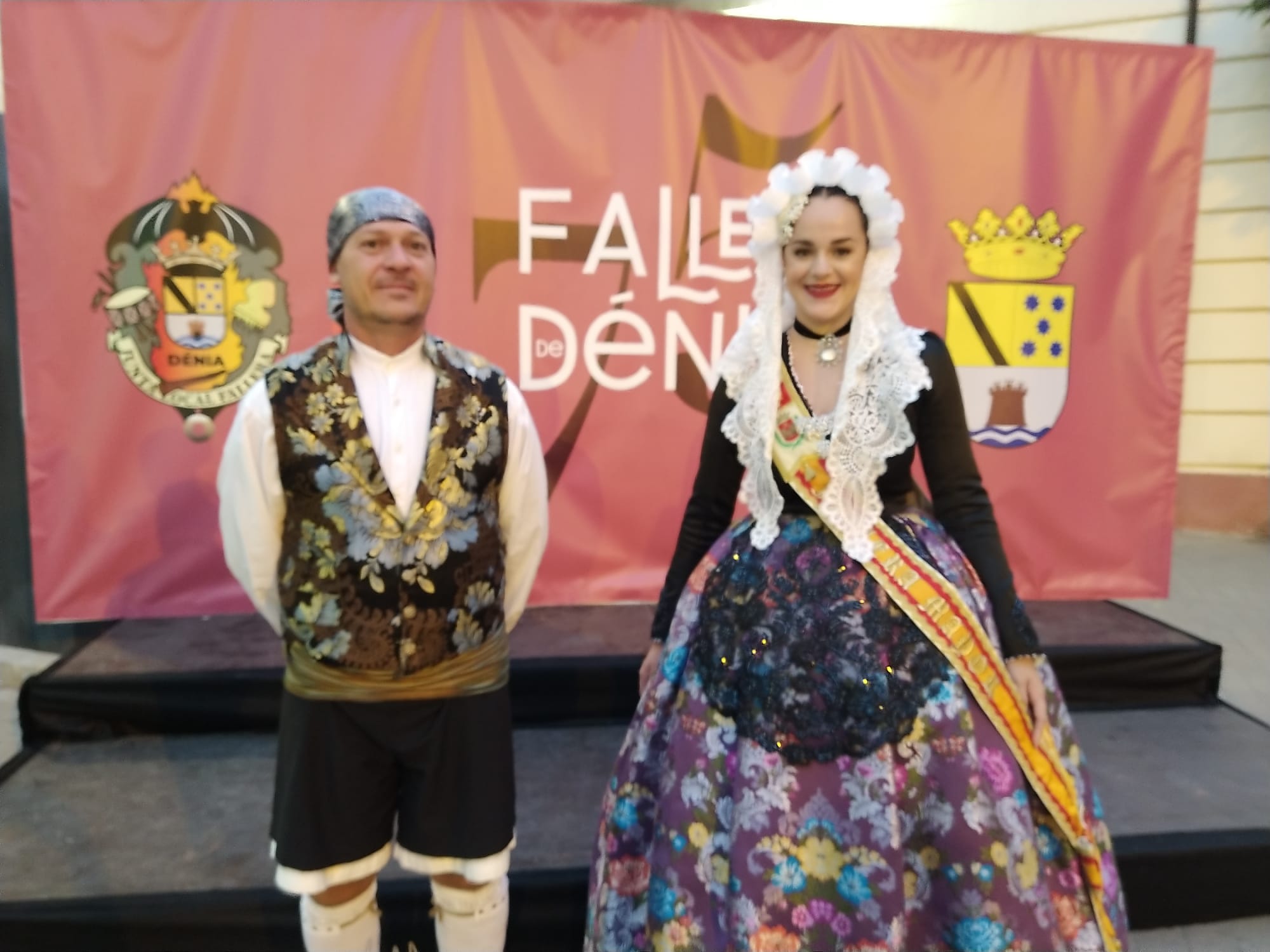 Lucía Giménez, fallera mayor de Elda, acompañada por Sergio Fuster, miembro de Junta Gestora de Fallas, han asistido a la proclamación de la Fallera Mayor de Denia.