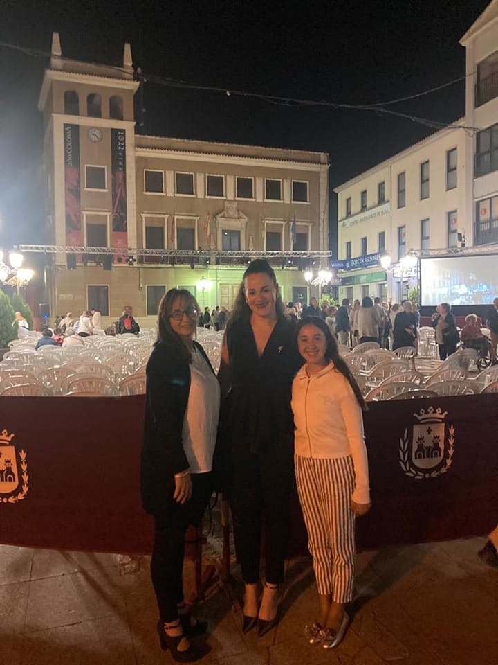 Las Falleras Mayores de Elda junto a la presidenta de Junta Gestora, acudieron al acto que se celebró en la plaza del Ayuntamiento de Elda con motivo del bicentenario de AMCE Santa Cecilia Elda.
