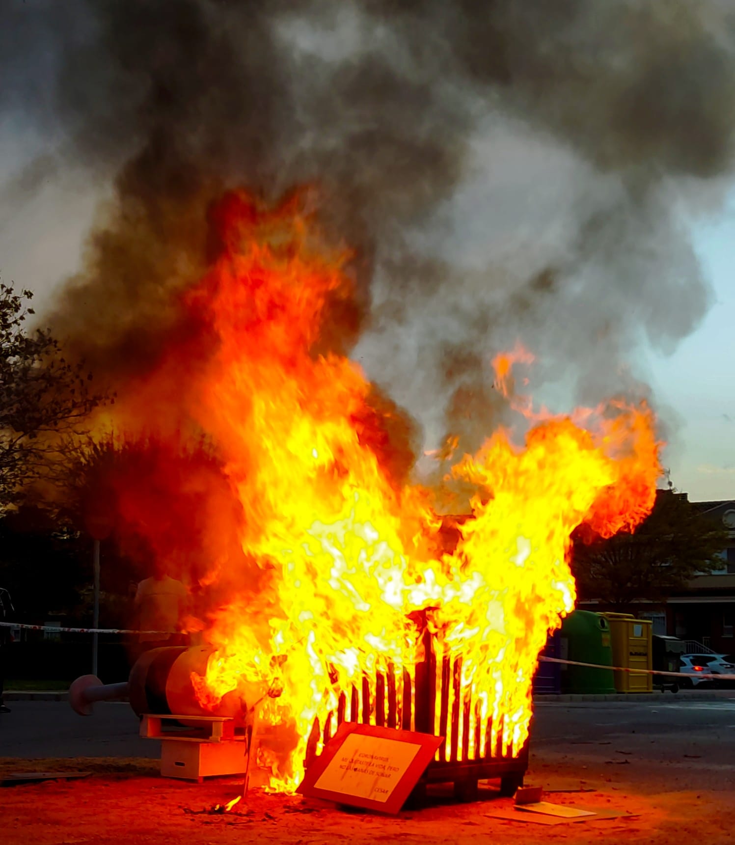 Hoy nuestras falleras mayores de Elda y sus damas de honor acompañadas por la presidenta de junta Gestora, han estado en en centro de atención integral COCEMFE de Petrer, asistiendo a la cremà de su falla.
