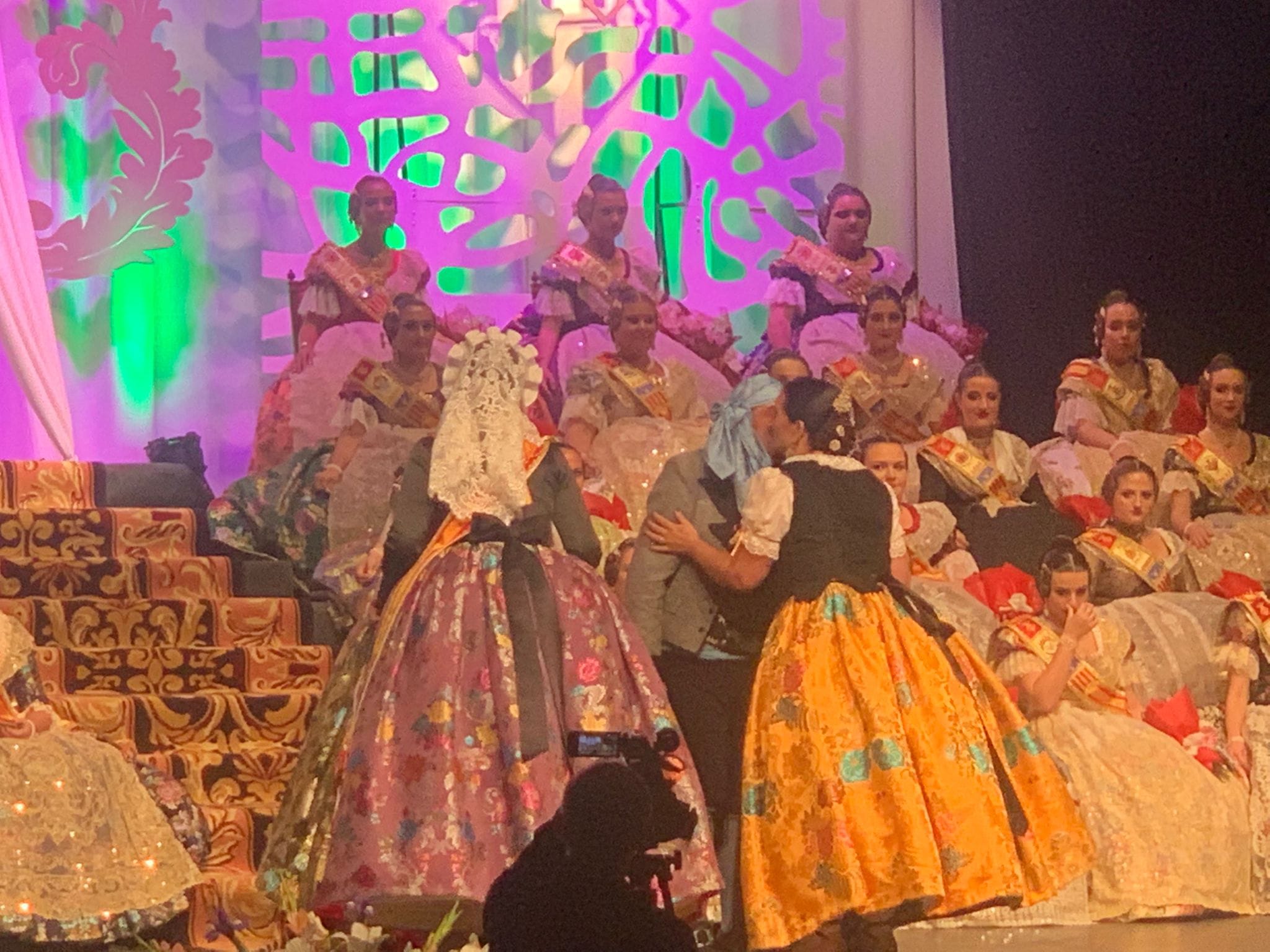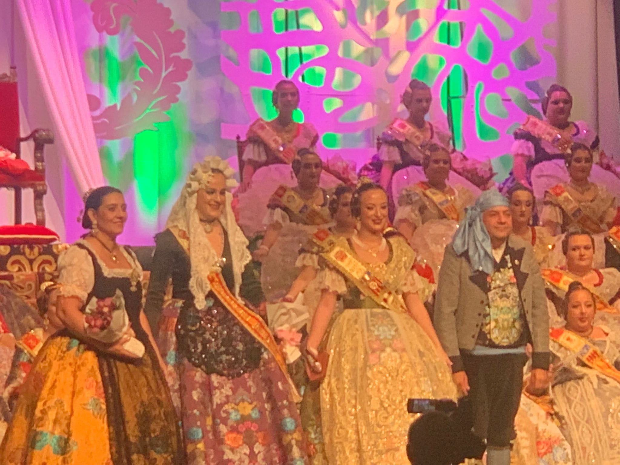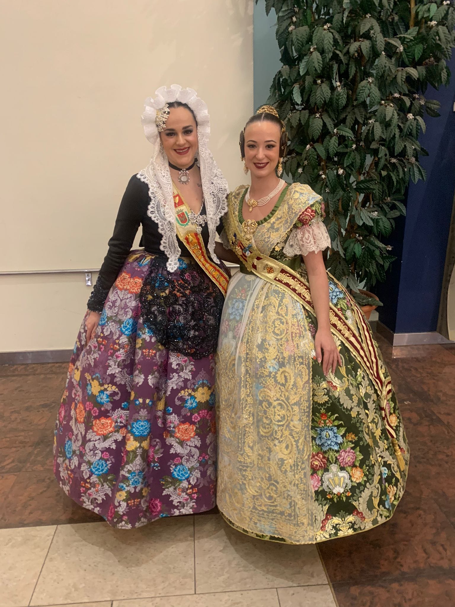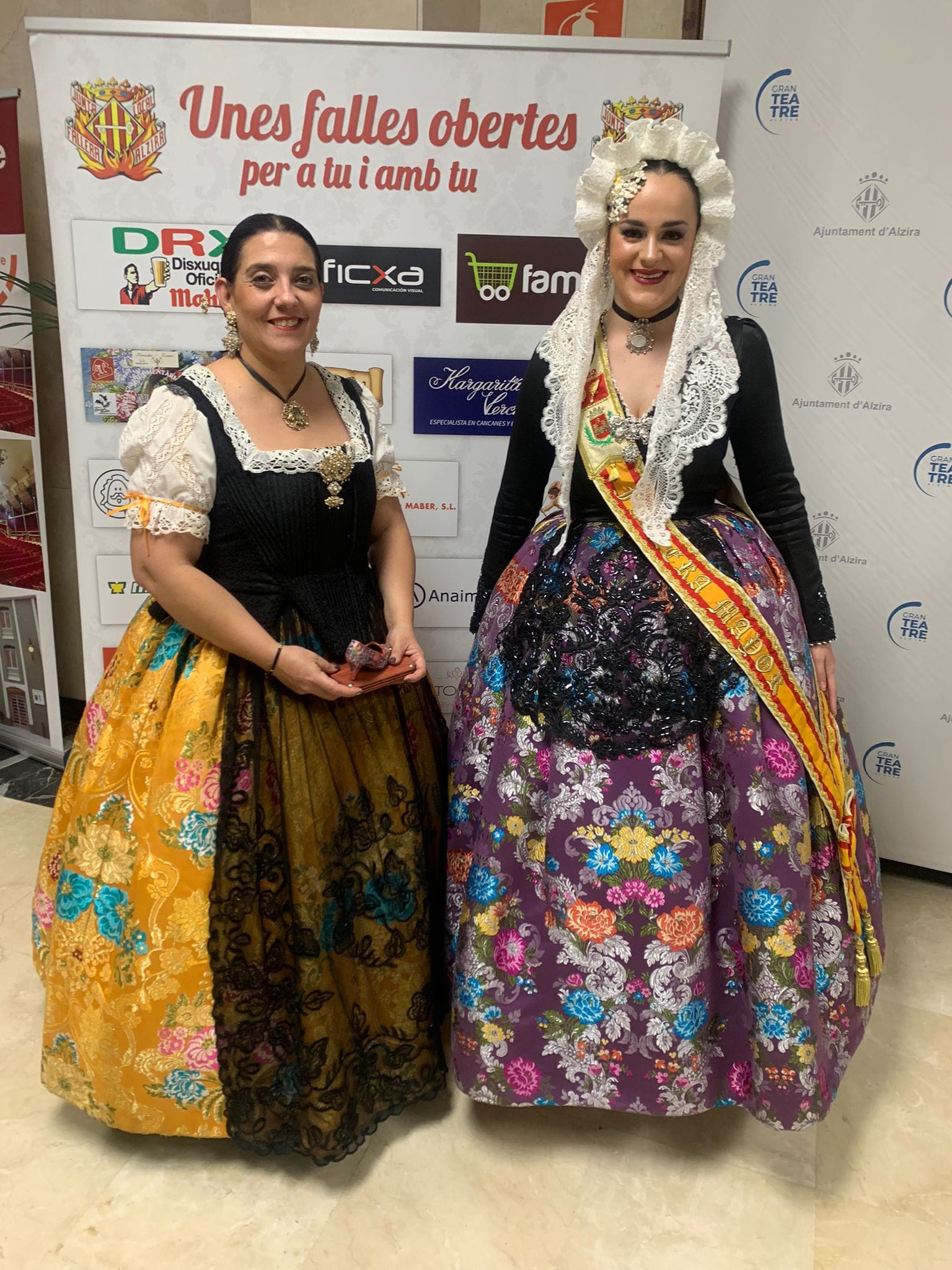 Lucía Giménez Quintanilla Fallera Mayor de Elda, acompañada por Adela Verdú, delegada de falleras de Junta Gestora, asistieron a la exaltación de Elena Cebrián, Fallera Mayor de Alzira 2023.