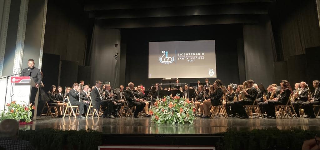 Lucía Giménez Quintanilla Fallera Mayor de Elda e Isabel Martínez Presidenta de Junta Gestora, asistieron al concierto extraordinario en honor a AMCE Santa Cecilia Elda.