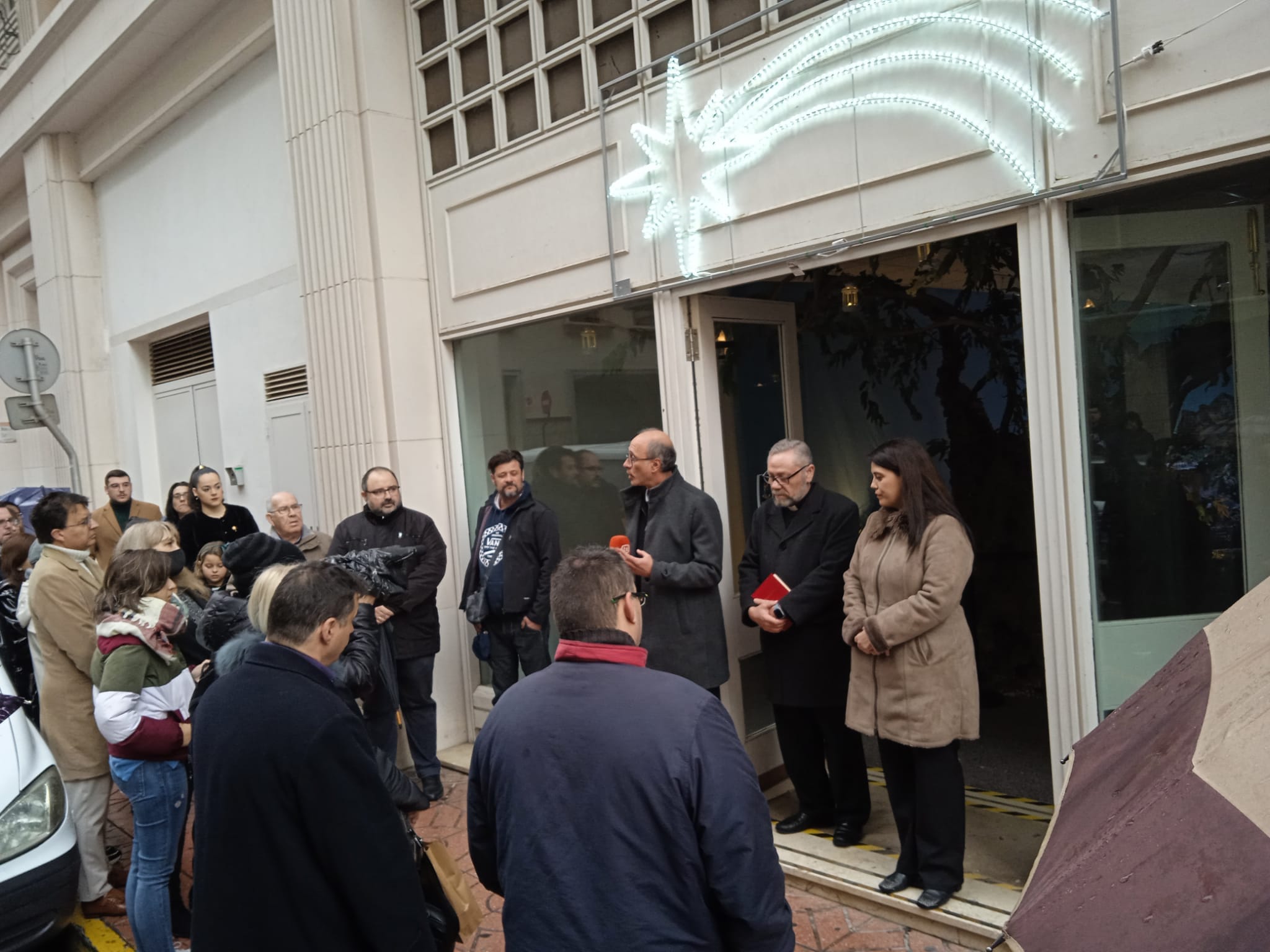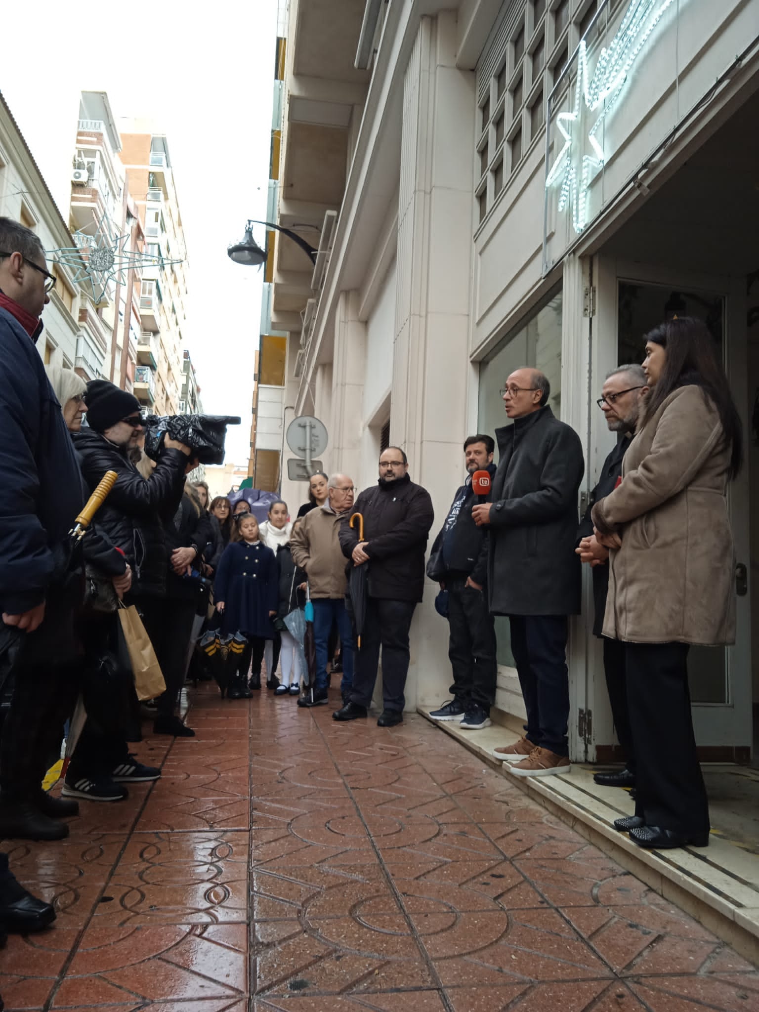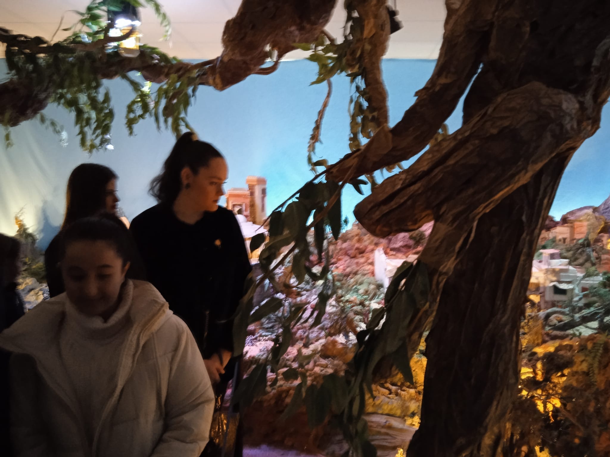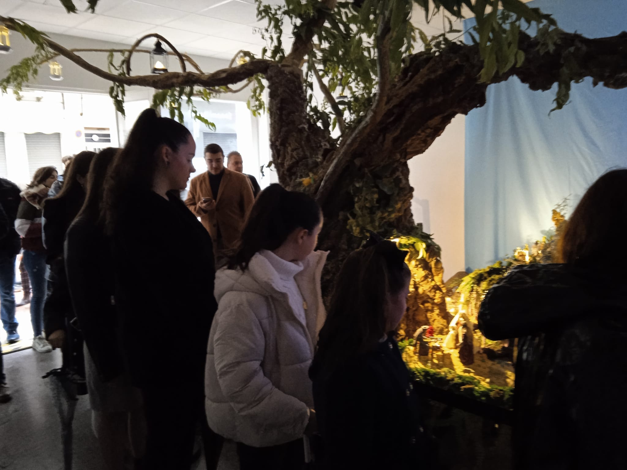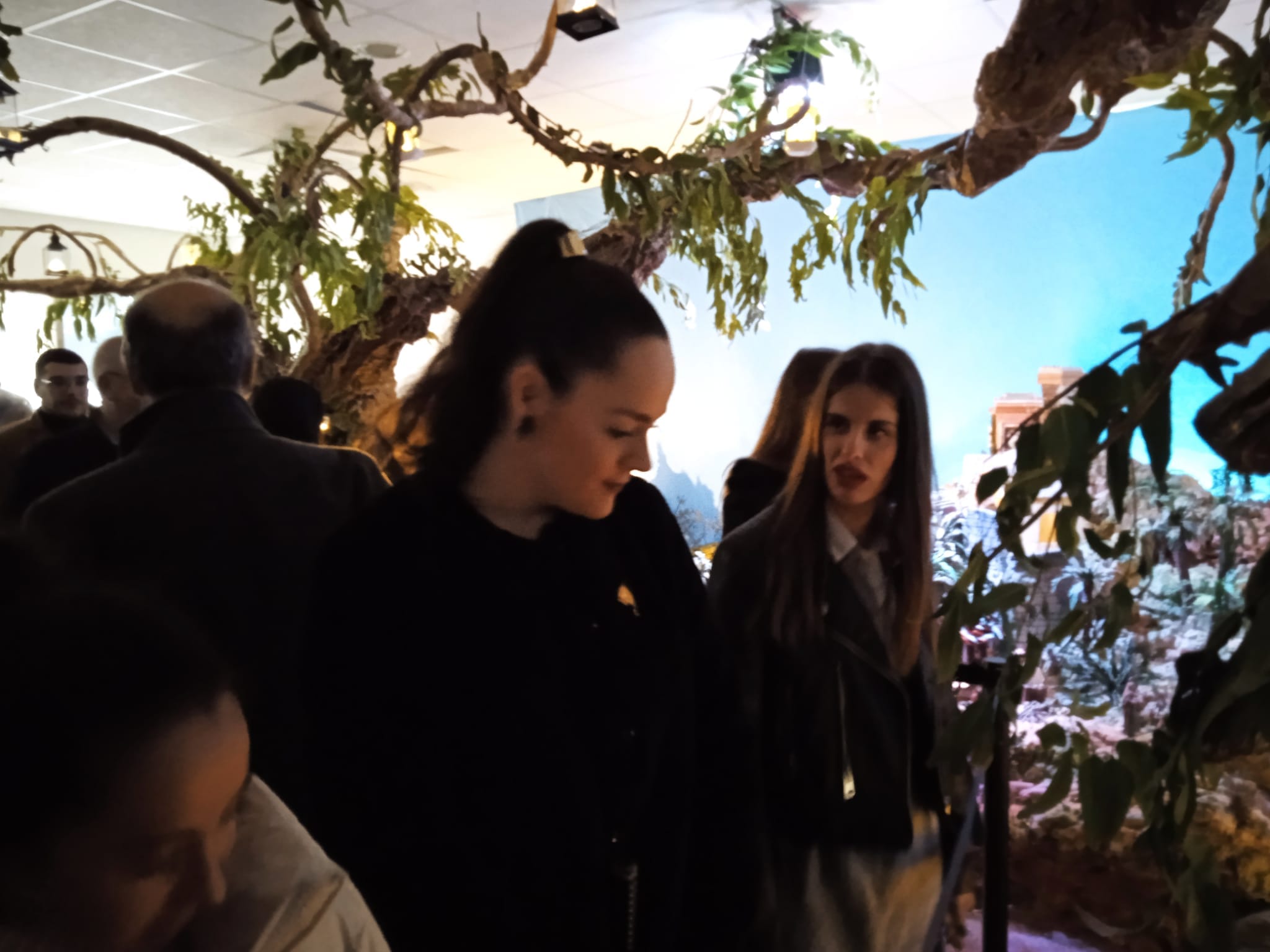 Las Falleras Mayores de Elda y sus Damas de Honor, acompañadas por Junta Gestora de Fallas, han asistido a la inauguración del Belén de la Junta Mayor de Cofradías y Hermandades de Elda.