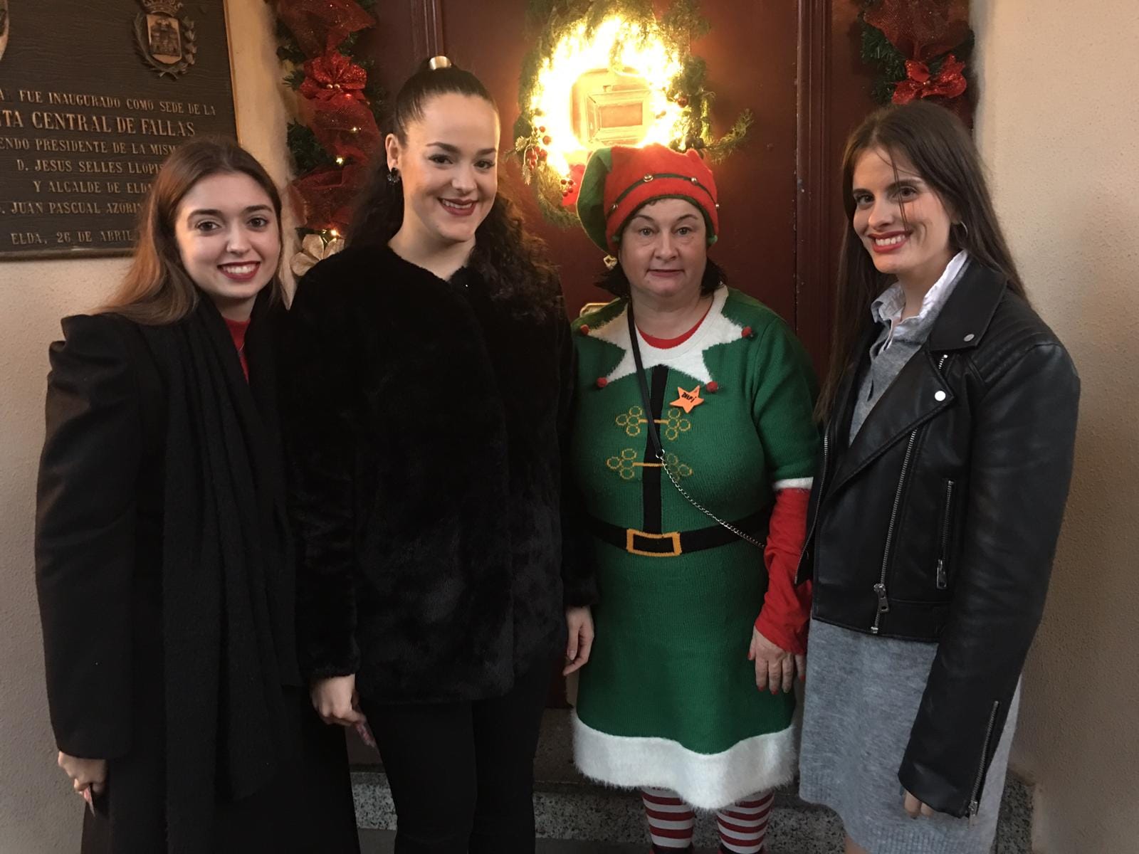 Lucía, Silvia y Sonia Fallera Mayor de Elda y sus damas de honor, han visitado la Casa Claus organizada por la Falla Fraternidad Elda.