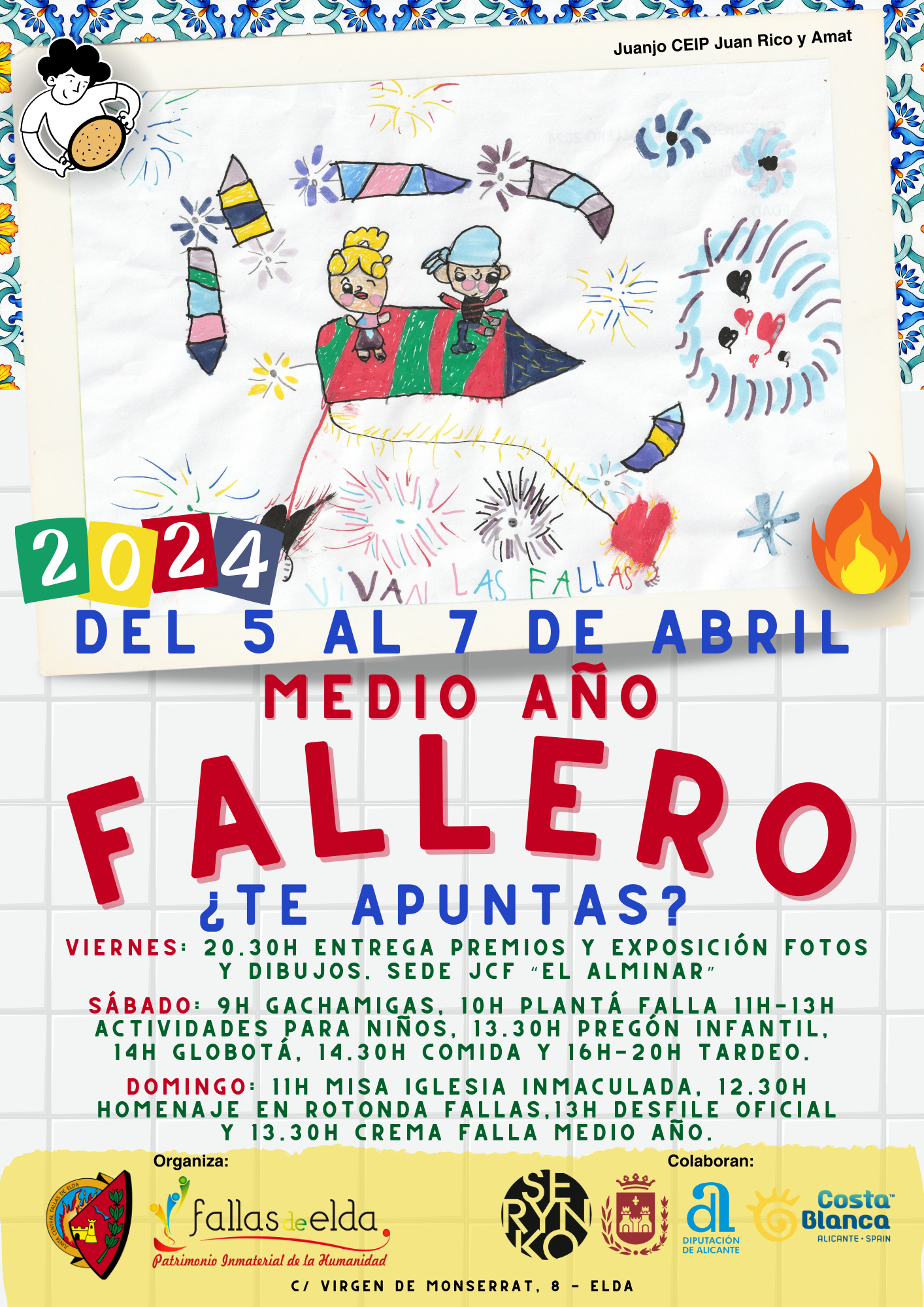 Pero eso no es todo. Este año, el cartel anunciador de la media fiesta estará encabezado por el dibujo ganador del concurso de dibujo de los colegios de Elda y Petrer, realizado por Juanjo Vizcaíno Morán, un talentoso niño de 7 años perteneciente al CEIP Juan Rico y Amat.