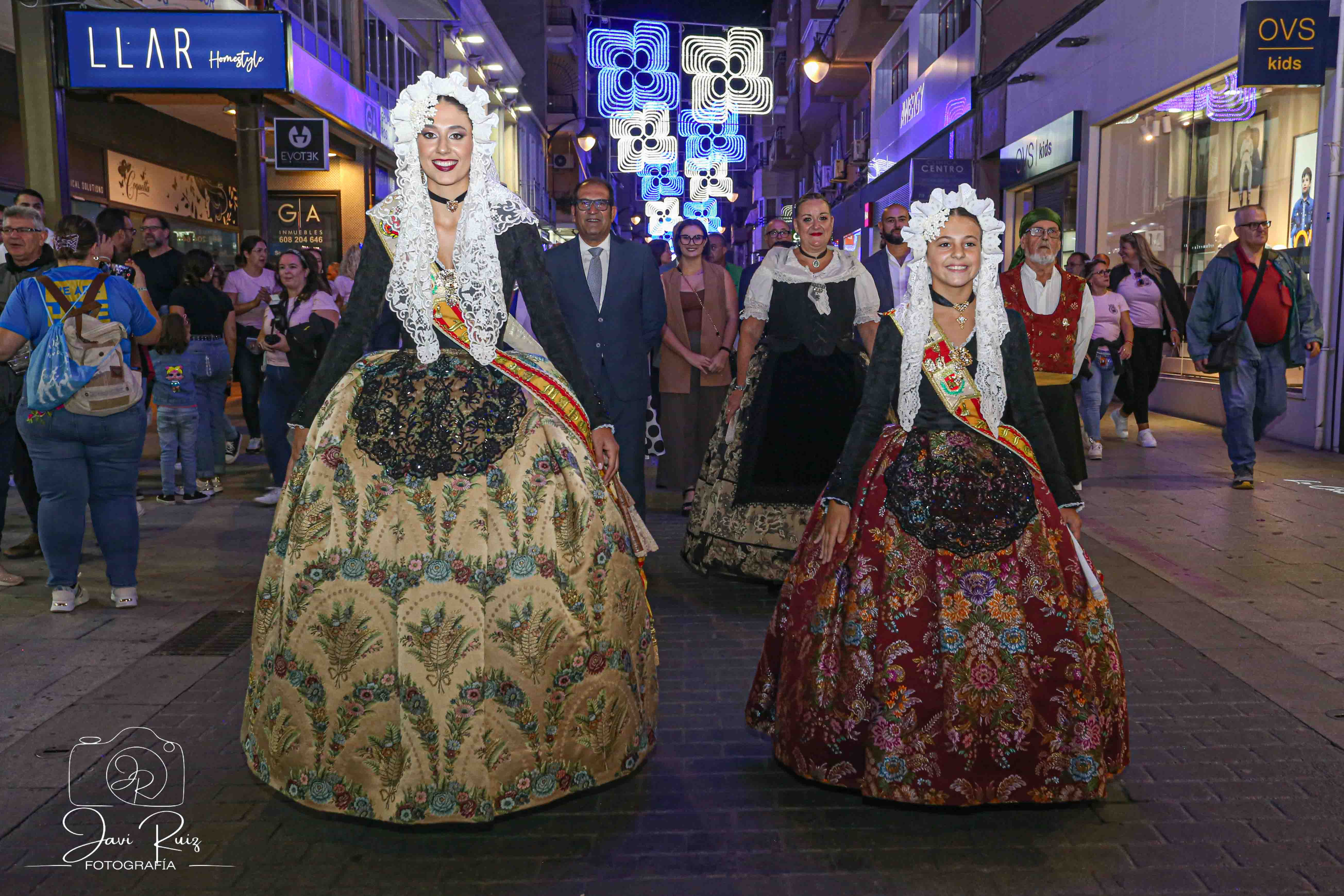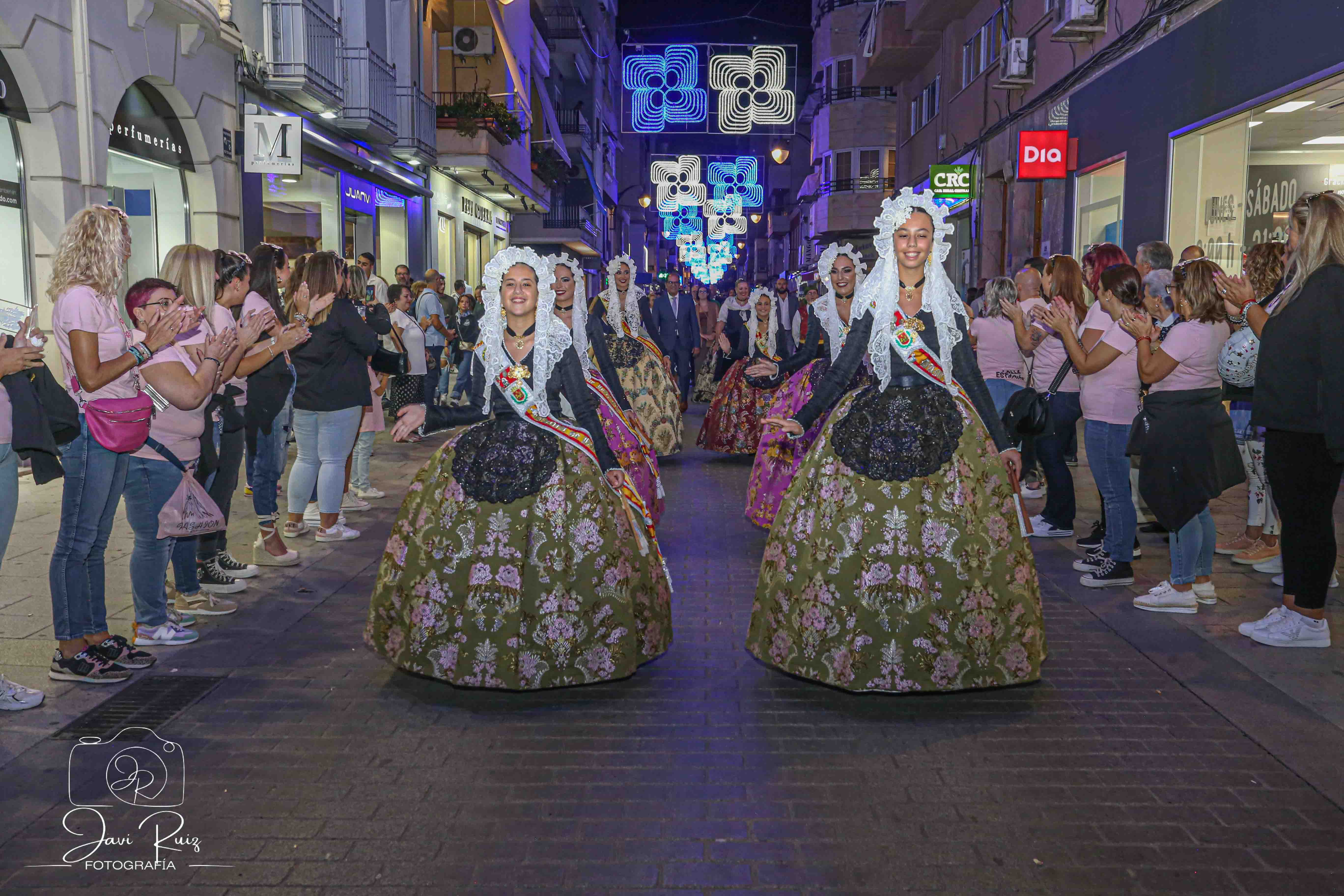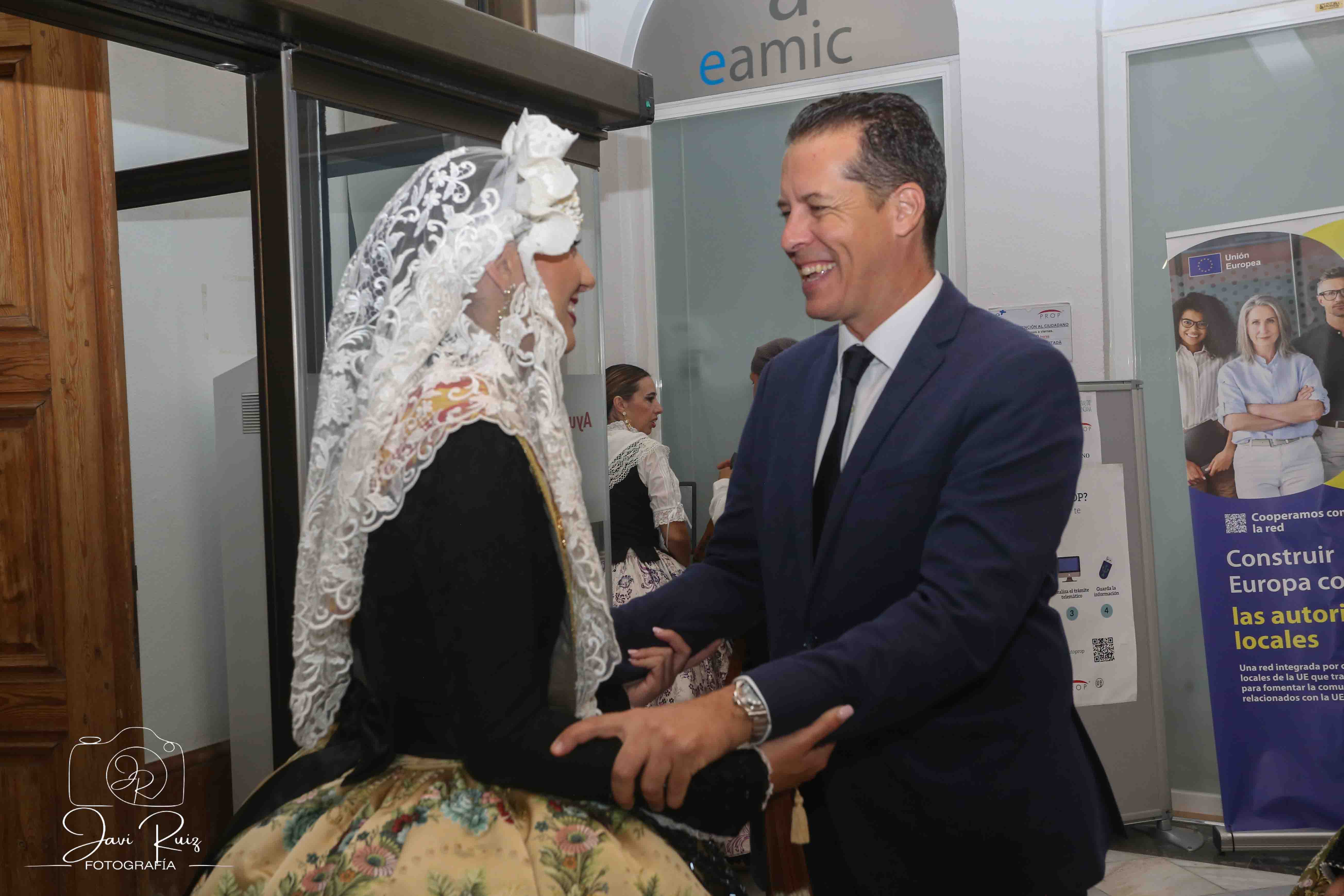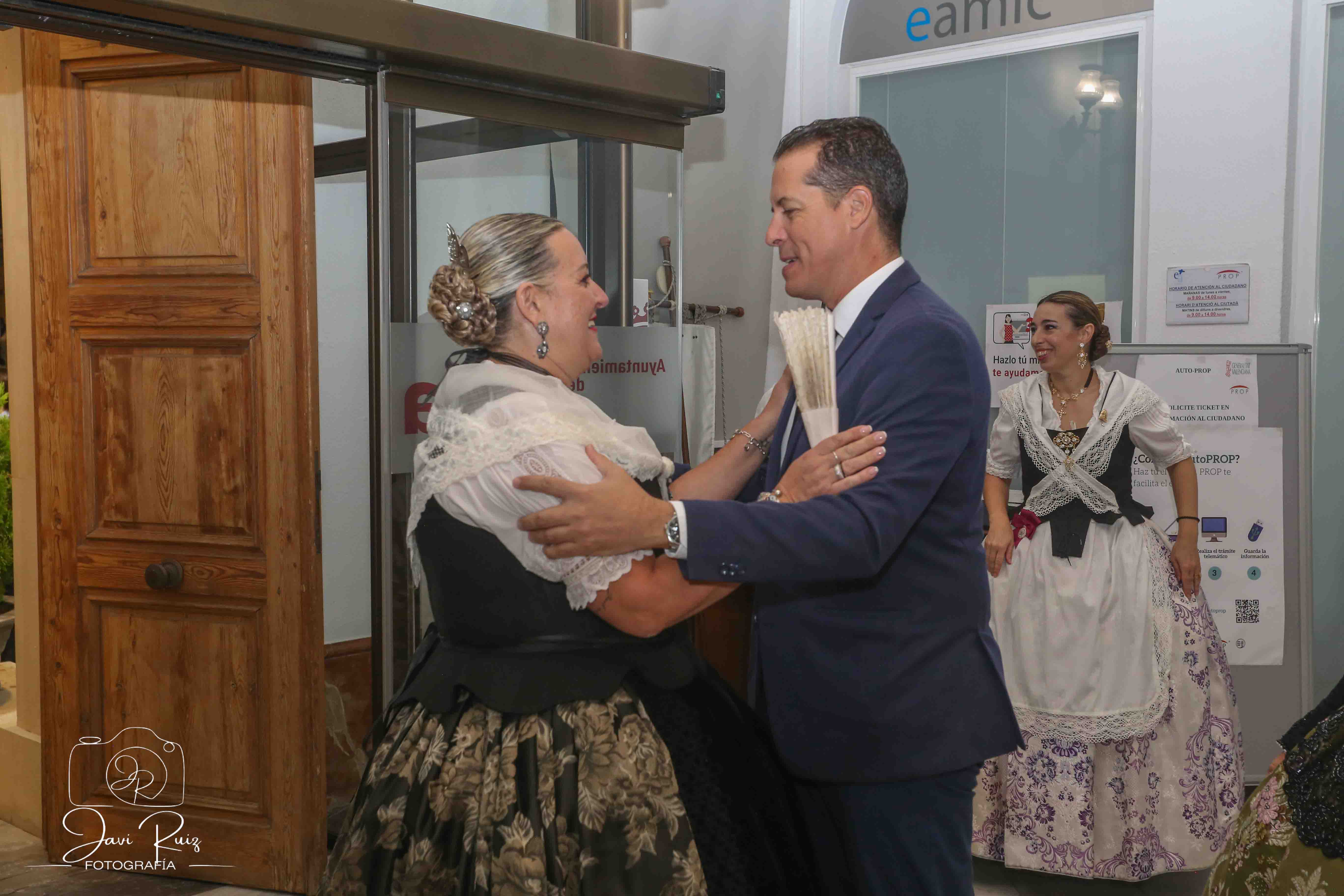 Sin embargo, la gran protagonista de la noche fue Carmen Beamud Huertas, quien desfiló junto a las máximas autoridades y arropada por su querida comisión de la Falla Estación, festeros, vecinos y amigos que no quisieron perderse este emotivo momento. Al llegar al balcón del Ayuntamiento, Carmen pronunció un pregón inolvidable, en el que mezcló emoción, sinceridad y humor, conquistando a los presentes que la ovacionaron con calurosos aplausos.