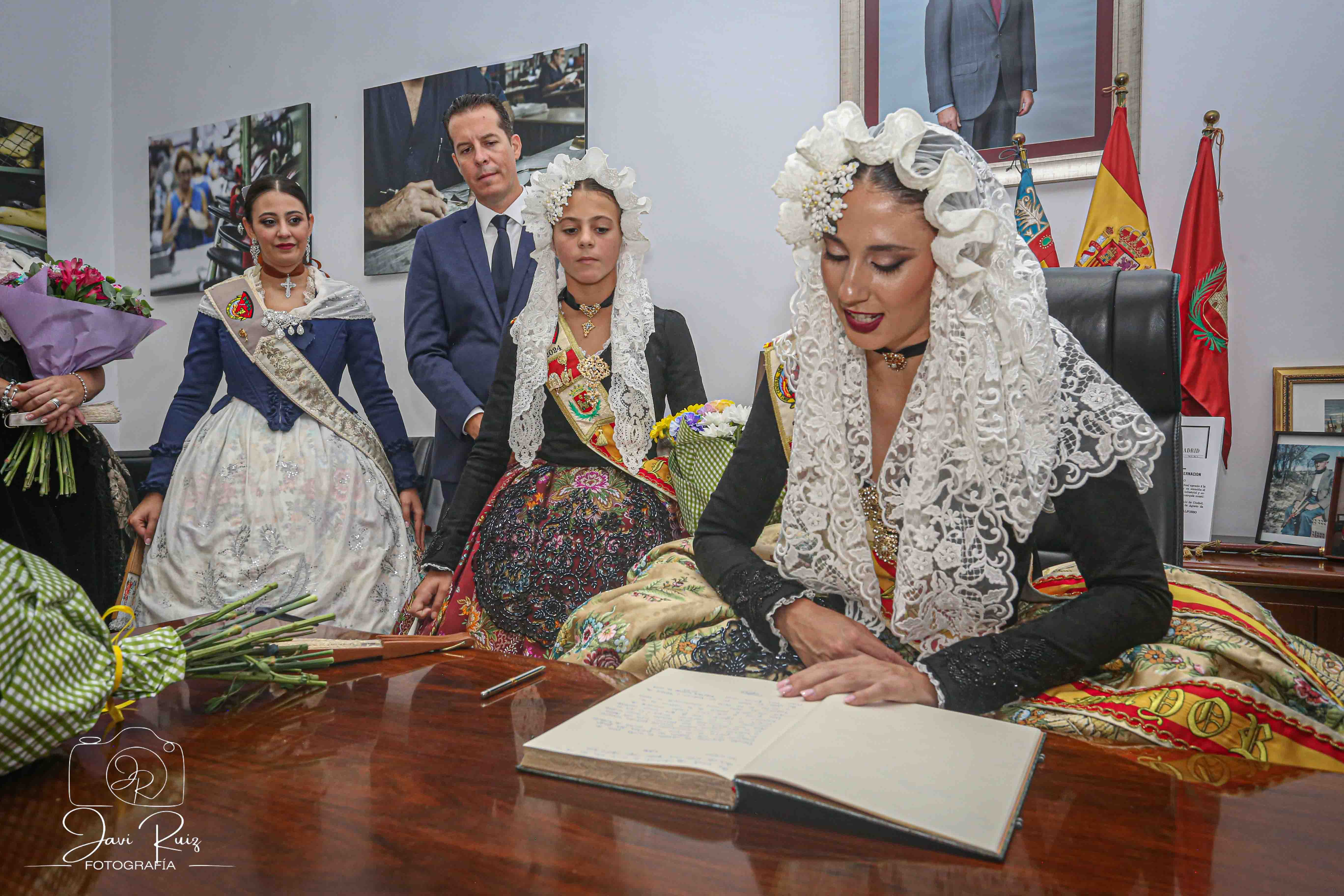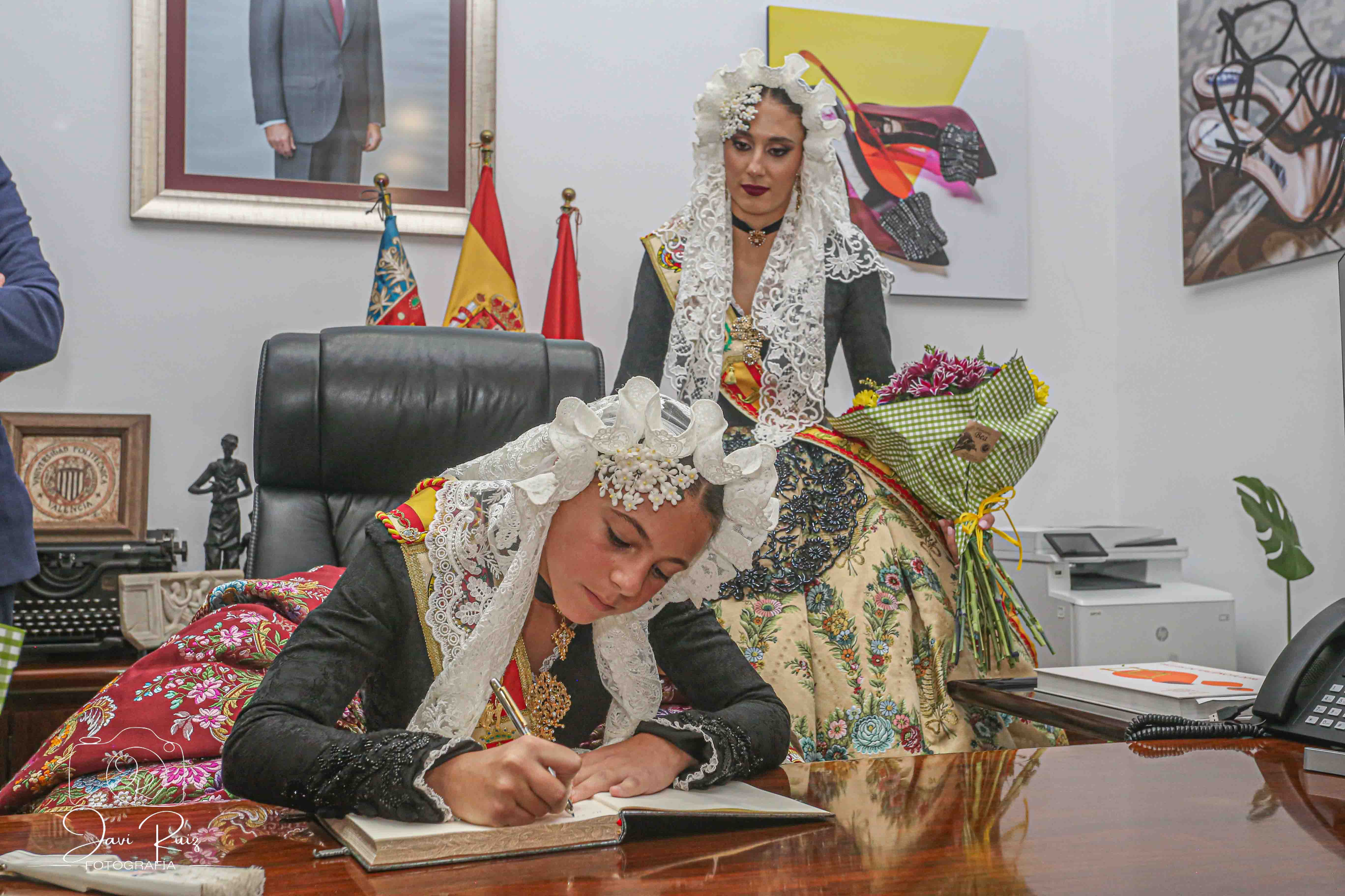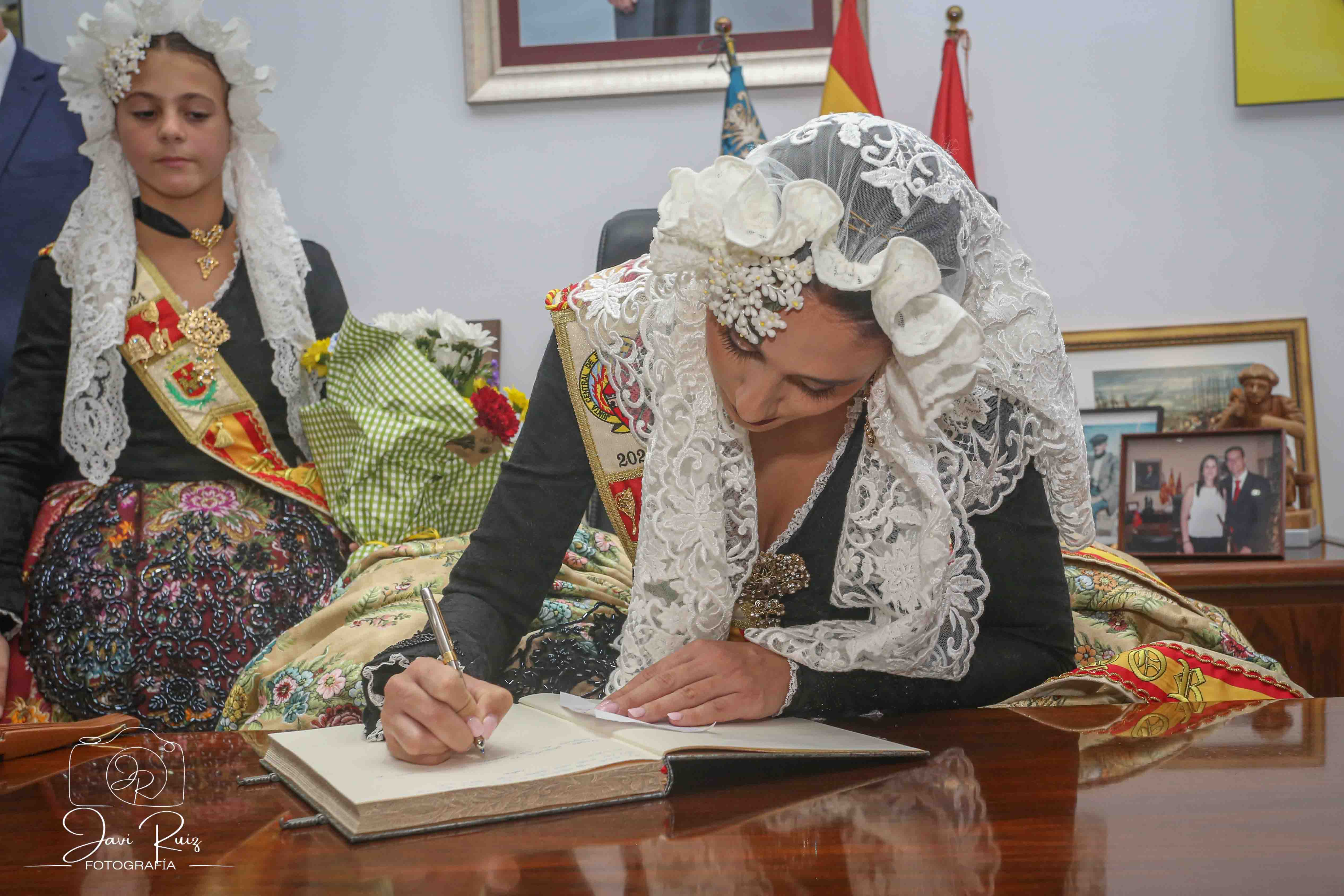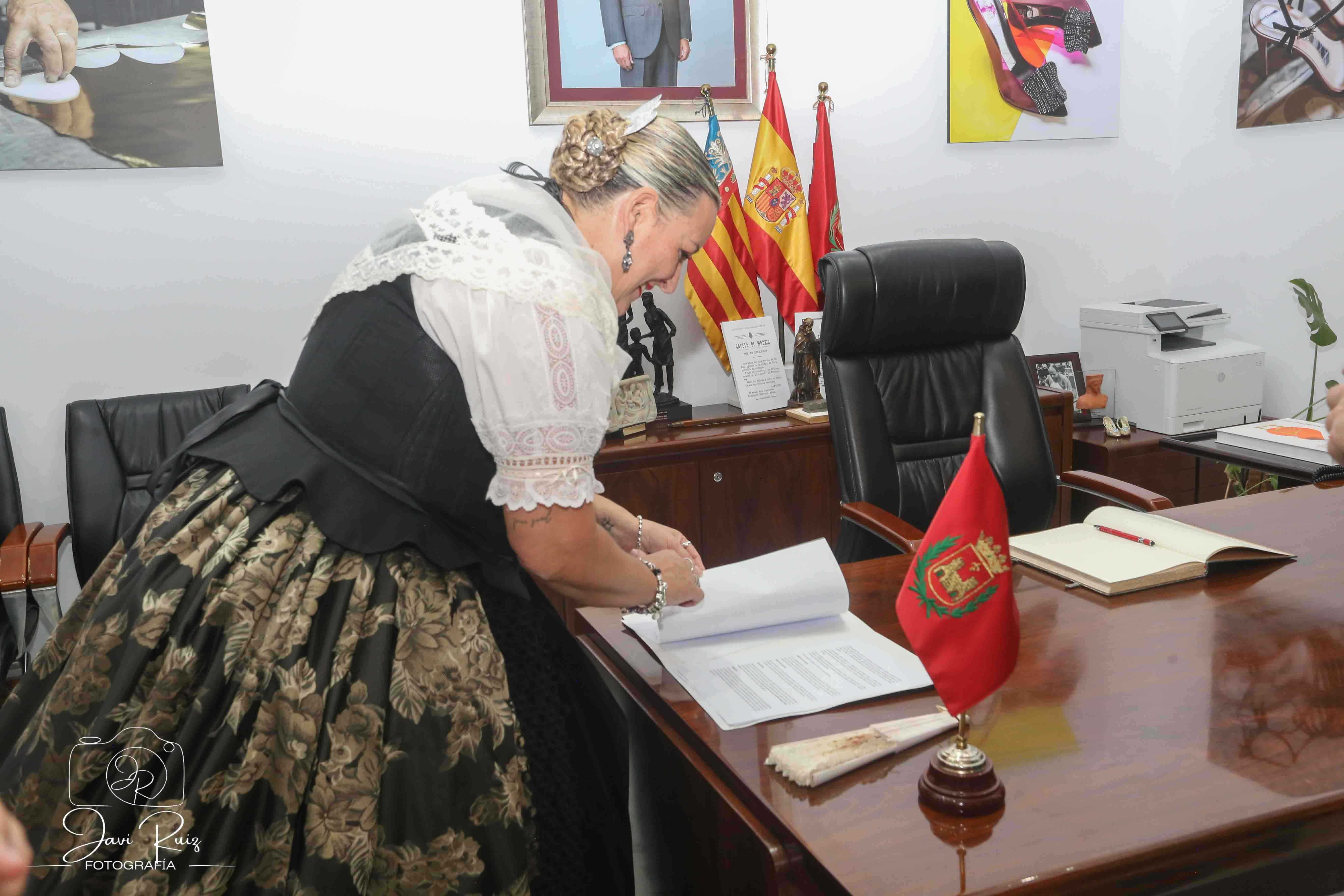 Posteriormente, Carmen Beamud y Adriana Santonja, pregonera infantil 2024, firmaron en el libro de honor de las Fallas de Elda, acompañadas por nuestras Falleras Mayores. Para cerrar la noche, se realizó un pasacalles hasta El Alminar, sede de Junta Central de Fallas, donde los asistentes disfrutaron de un ágape para dar por finalizada la velada, marcando oficialmente el inicio de las Fallas de Elda 2024.