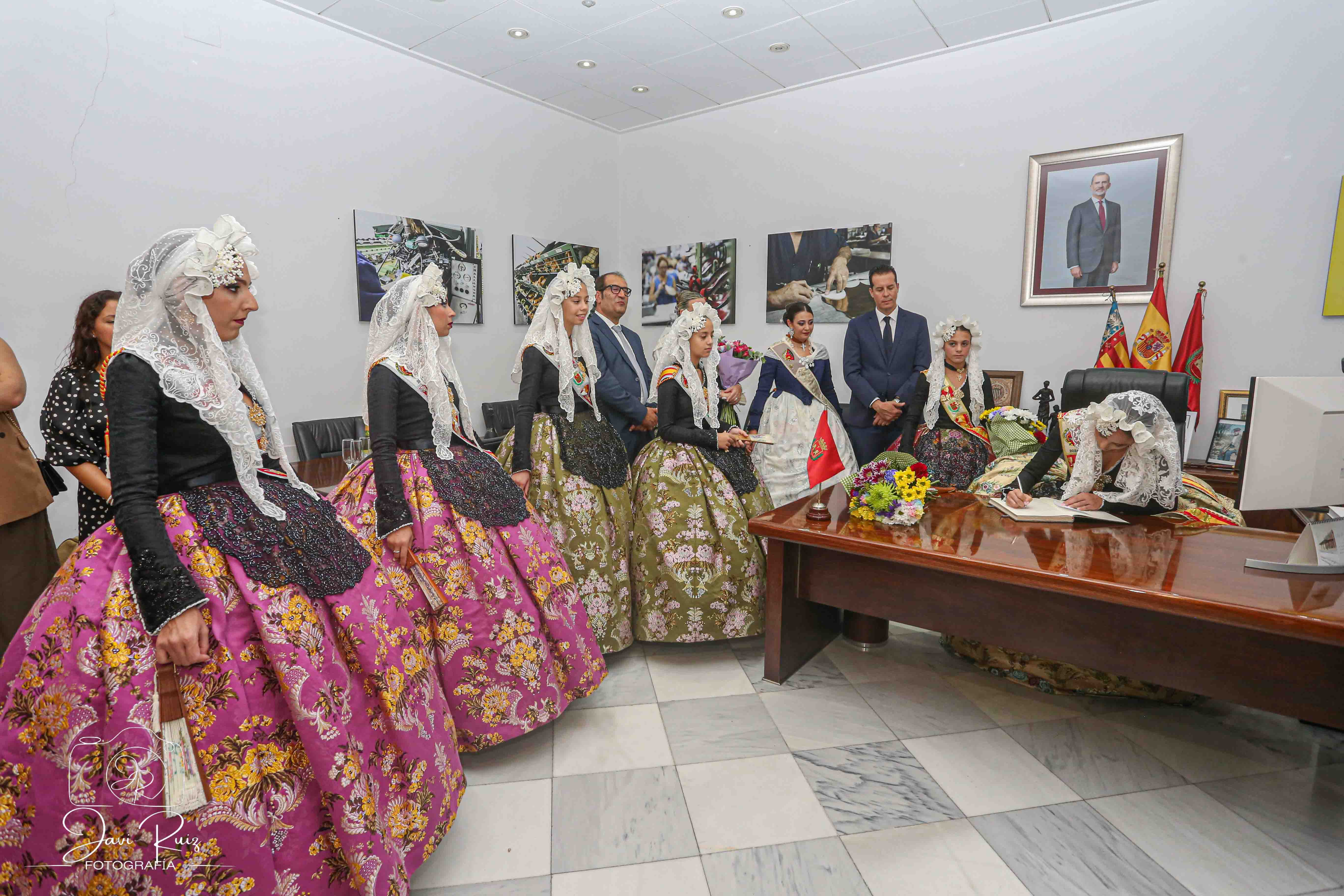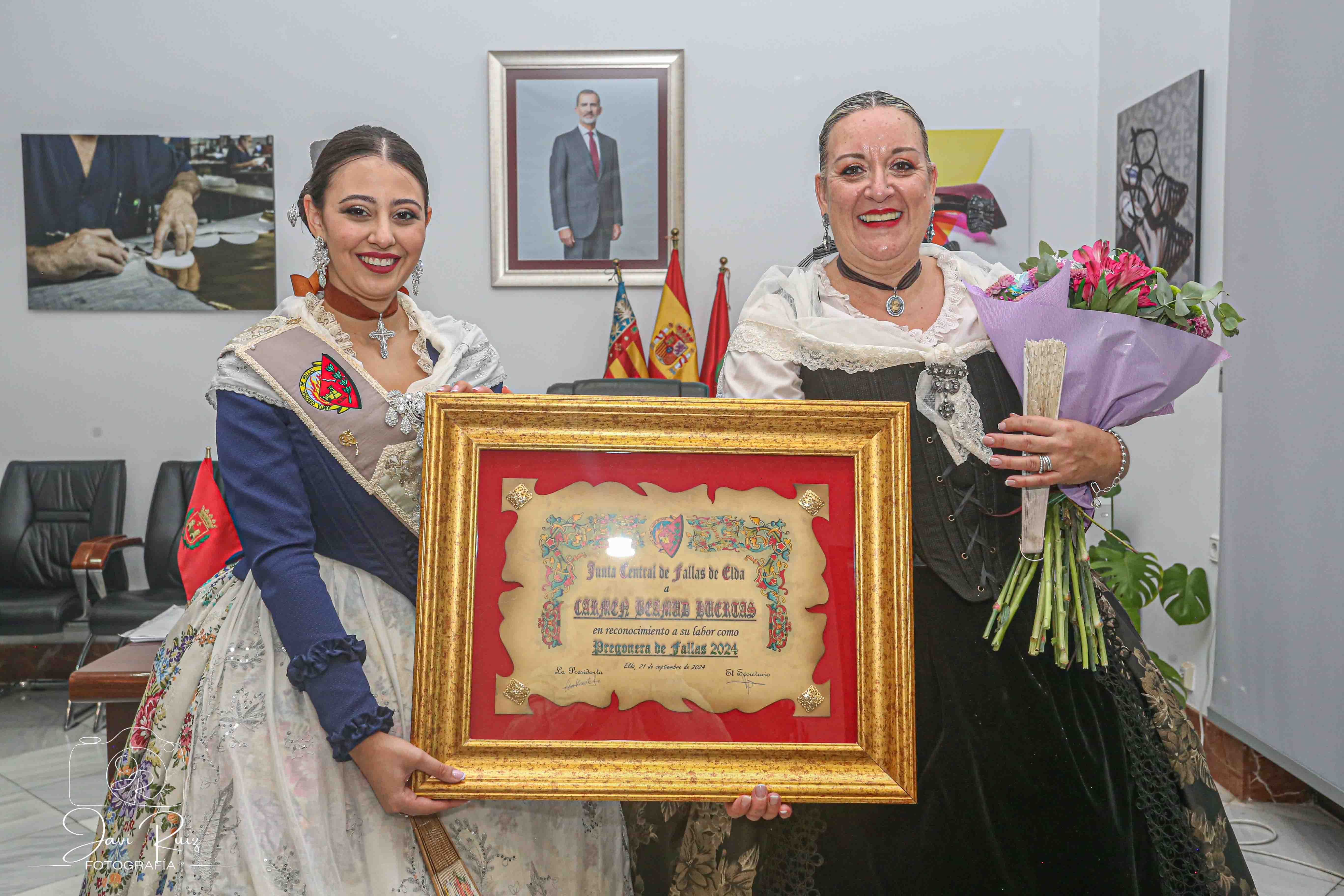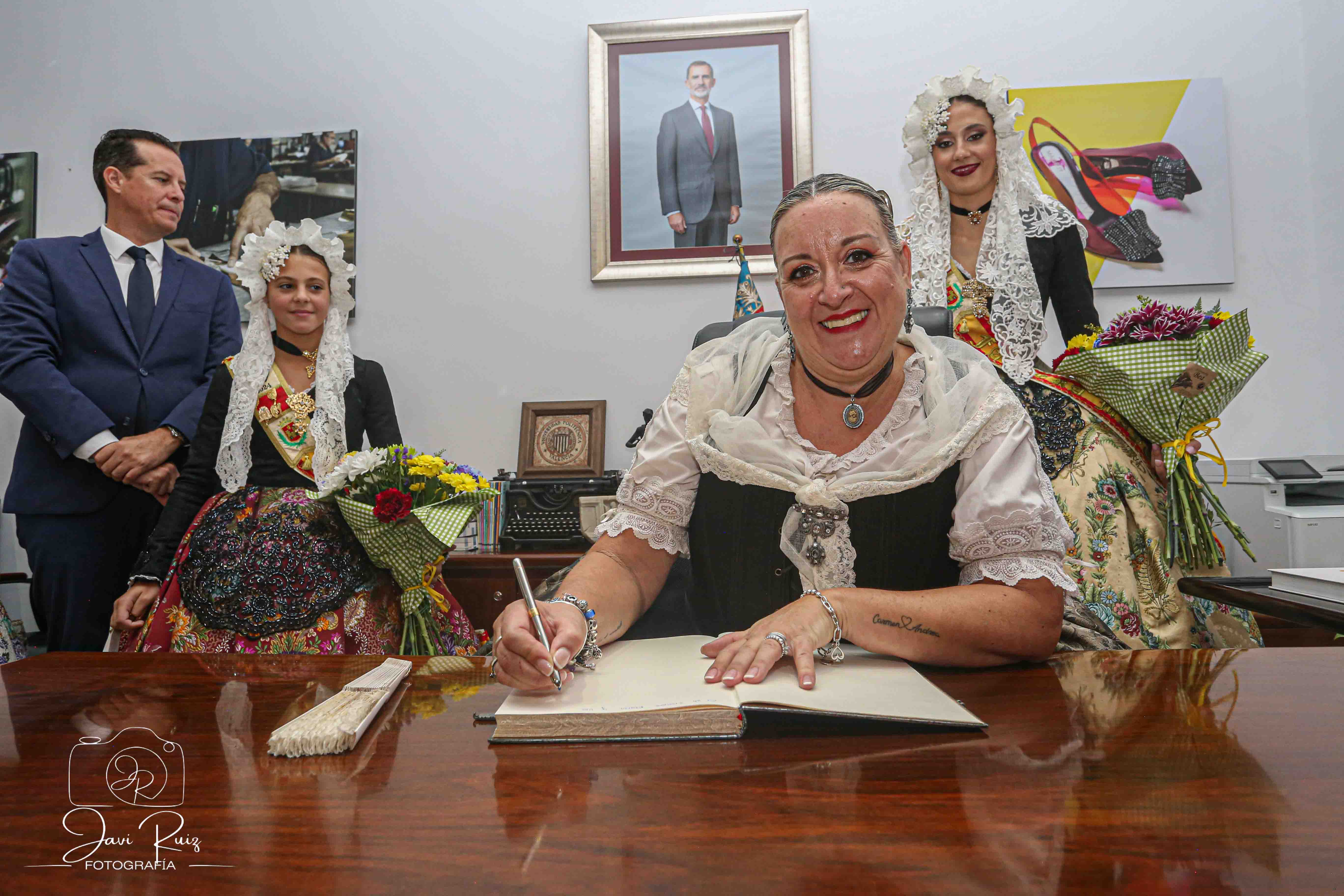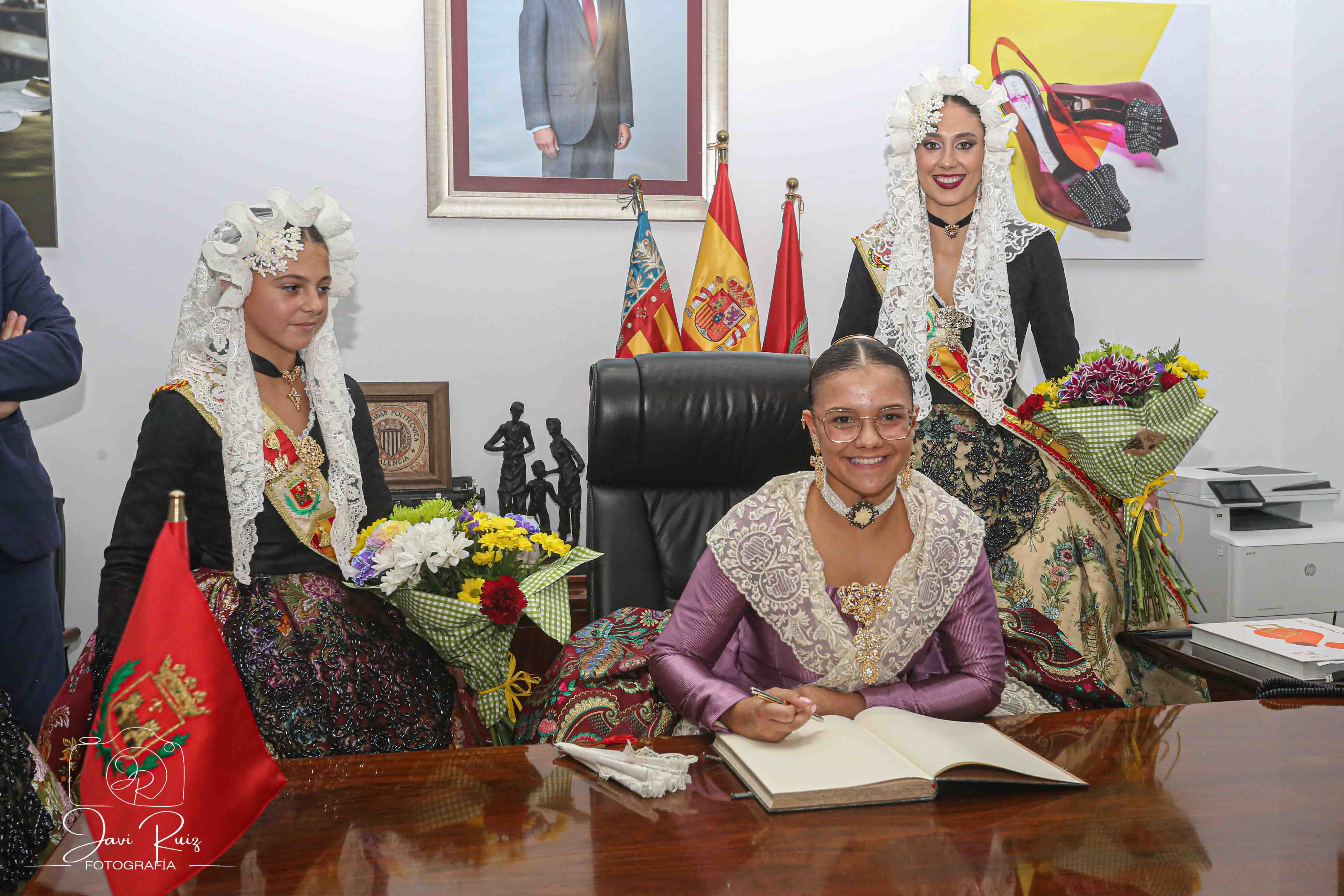 Posteriormente, Carmen Beamud y Adriana Santonja, pregonera infantil 2024, firmaron en el libro de honor de las Fallas de Elda, acompañadas por nuestras Falleras Mayores. Para cerrar la noche, se realizó un pasacalles hasta El Alminar, sede de Junta Central de Fallas, donde los asistentes disfrutaron de un ágape para dar por finalizada la velada, marcando oficialmente el inicio de las Fallas de Elda 2024.