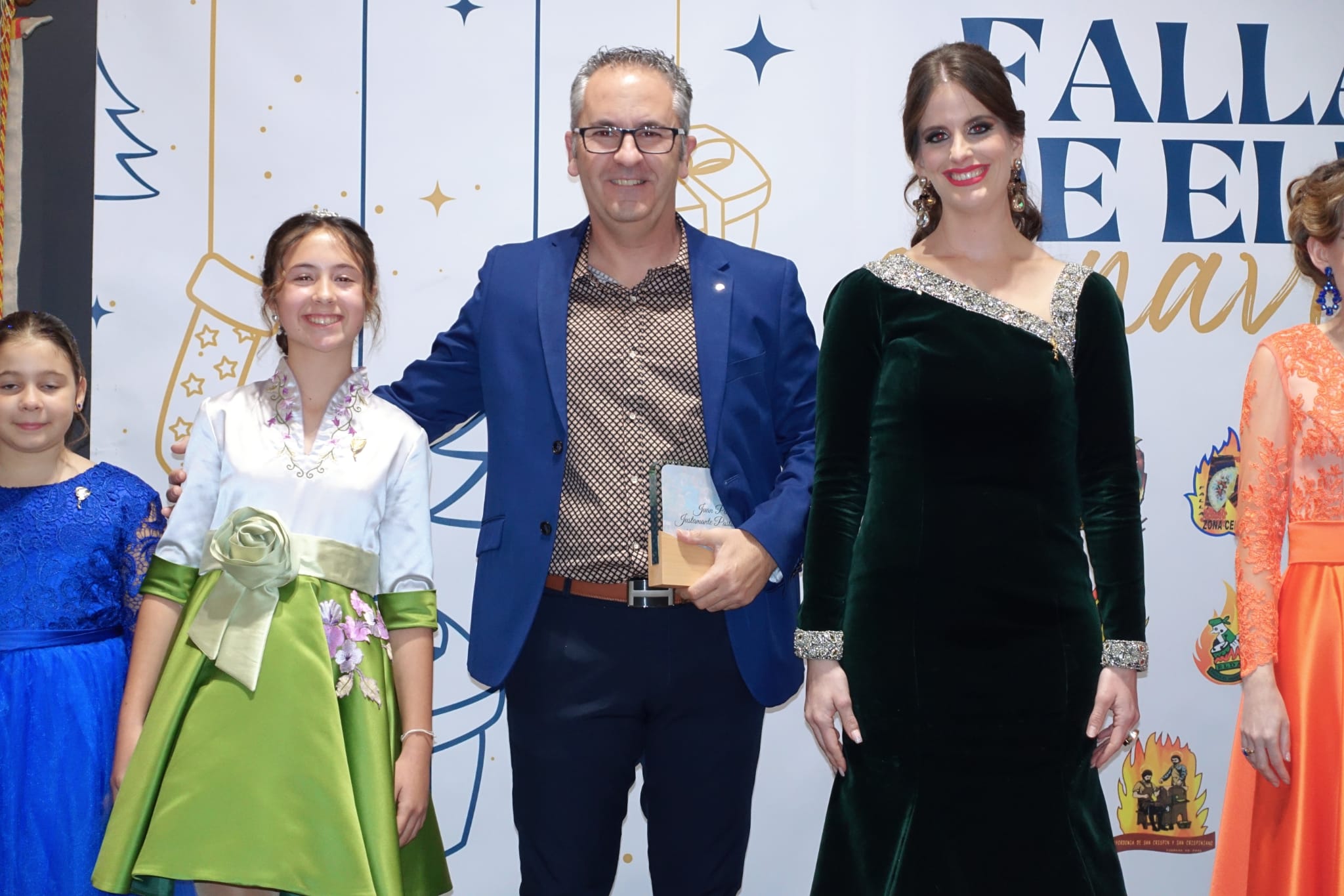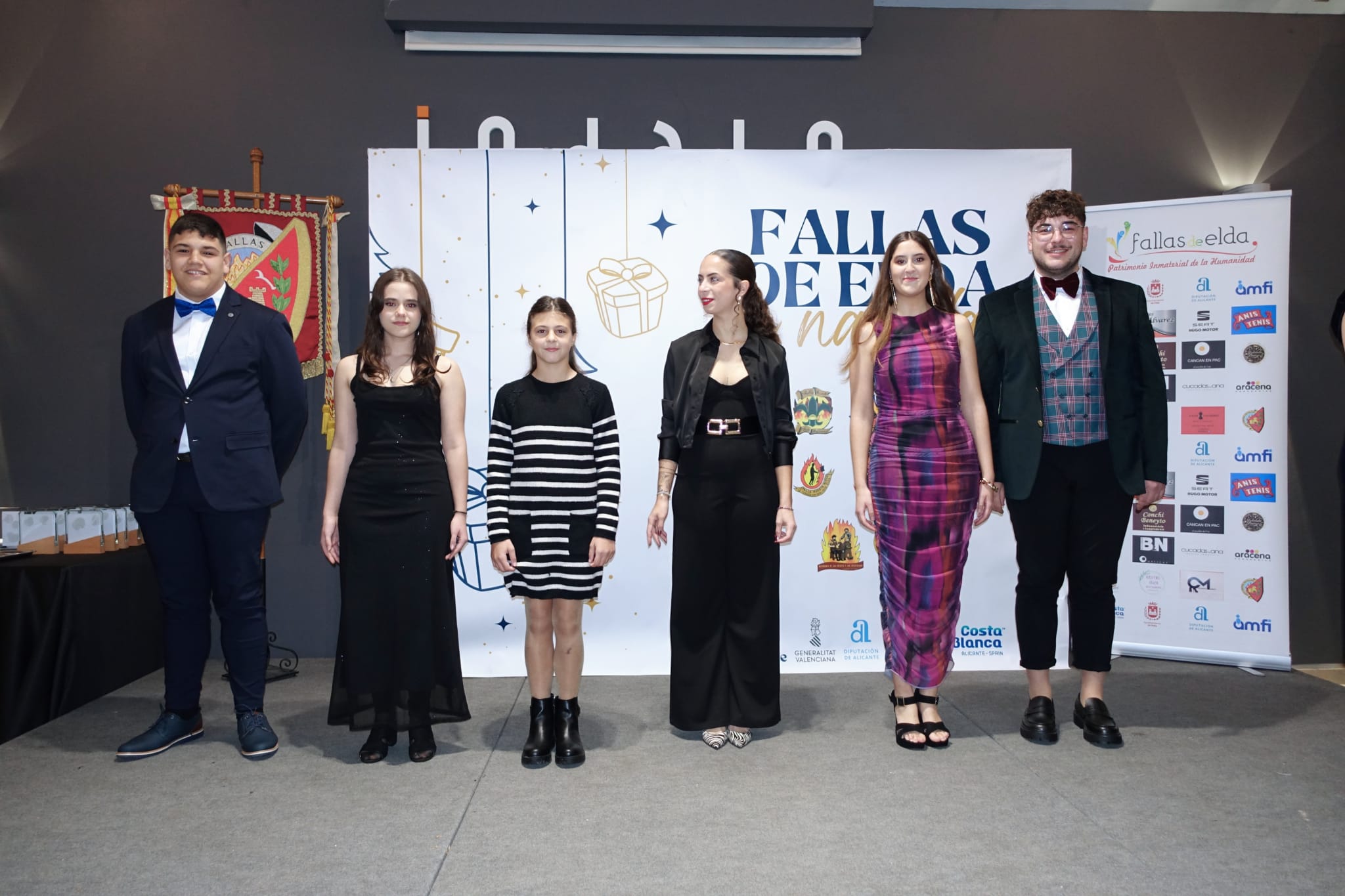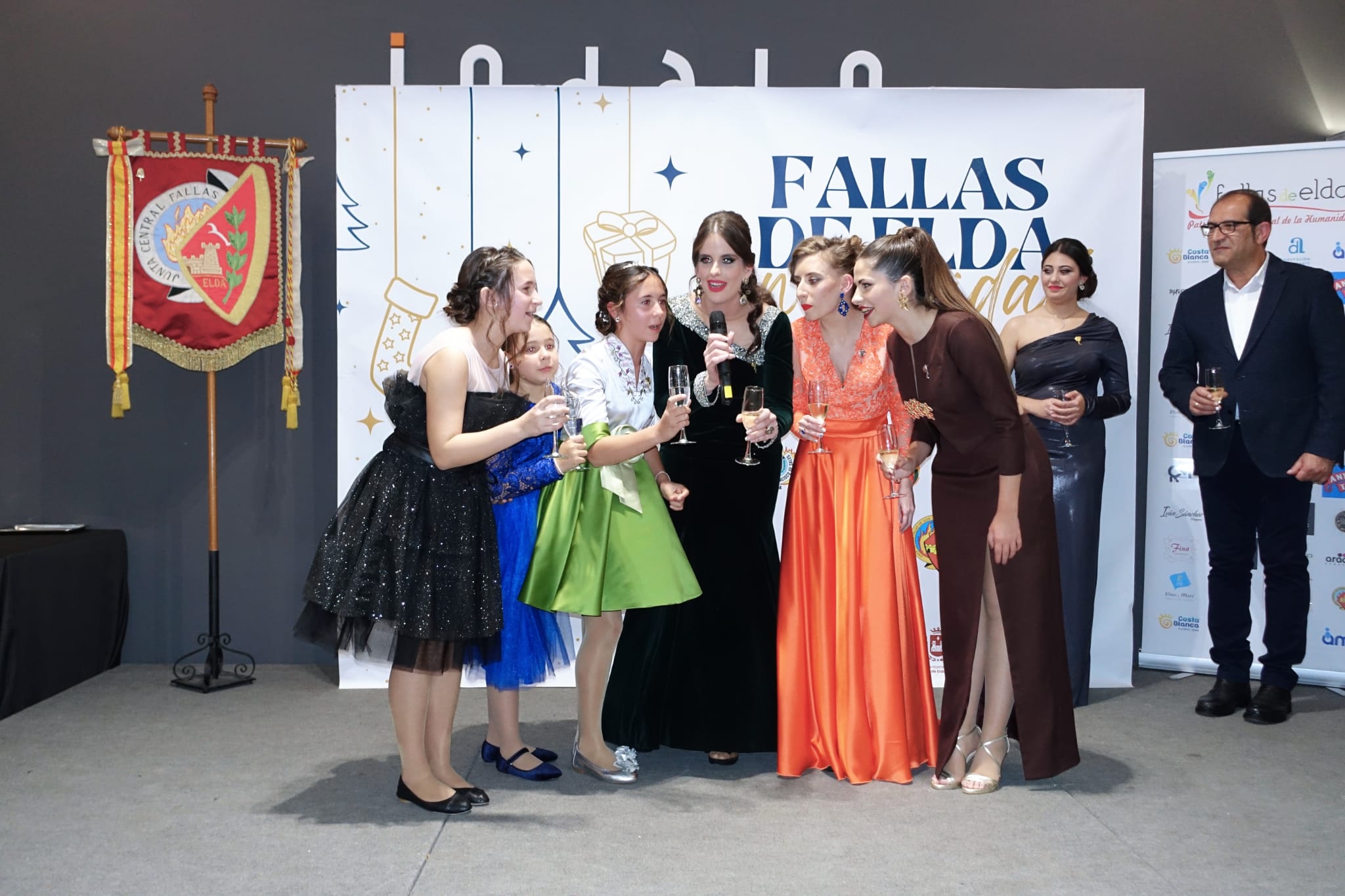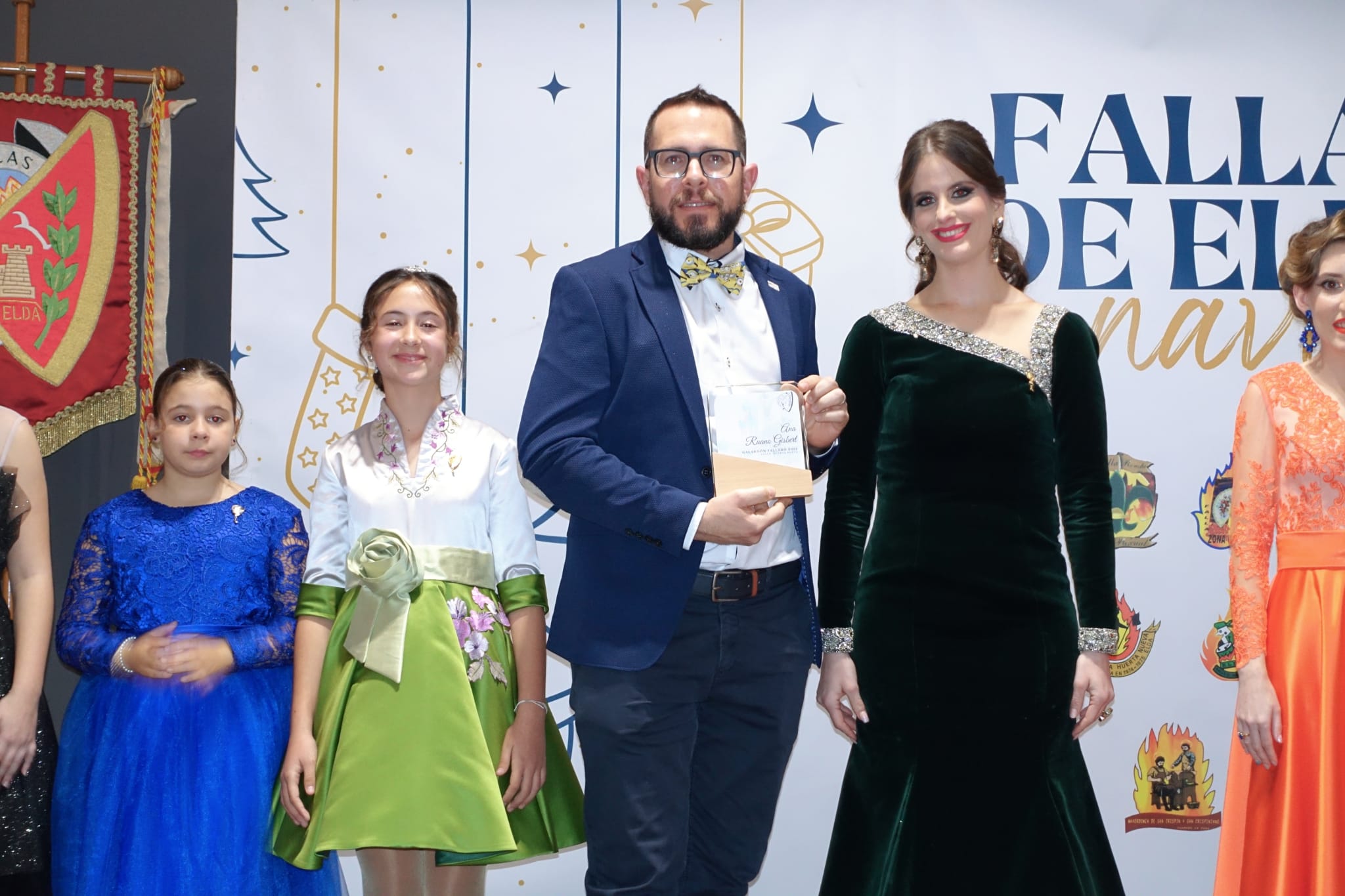 Los galardonados de este año fueron anunciados con gran entusiasmo durante la ceremonia. Las Falleras Mayores de Elda y sus Damas de Honor, quienes, además de ser las encargadas de entregar los galardones, realizaron el brindis con un emotivo mensaje y desearon unas felices fiestas navideñas a todo el mundo fallero.