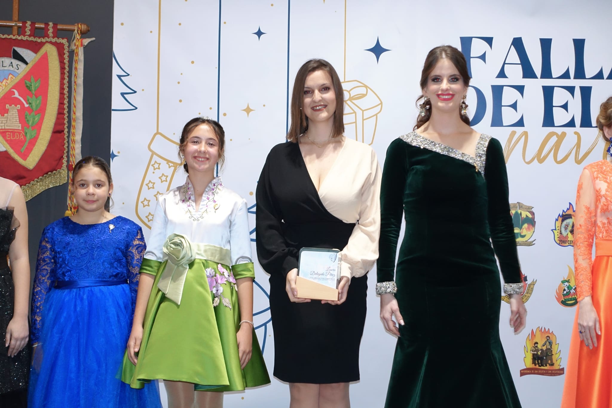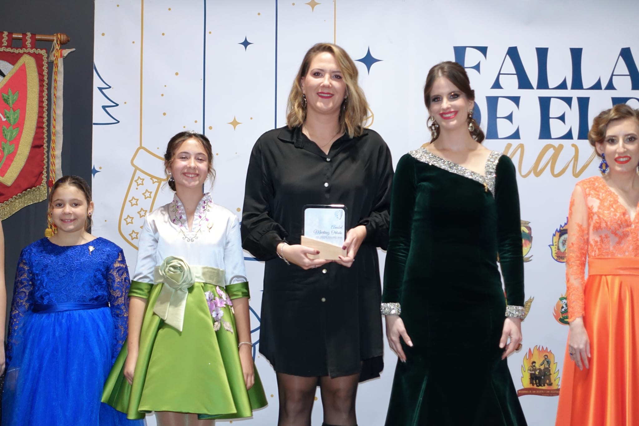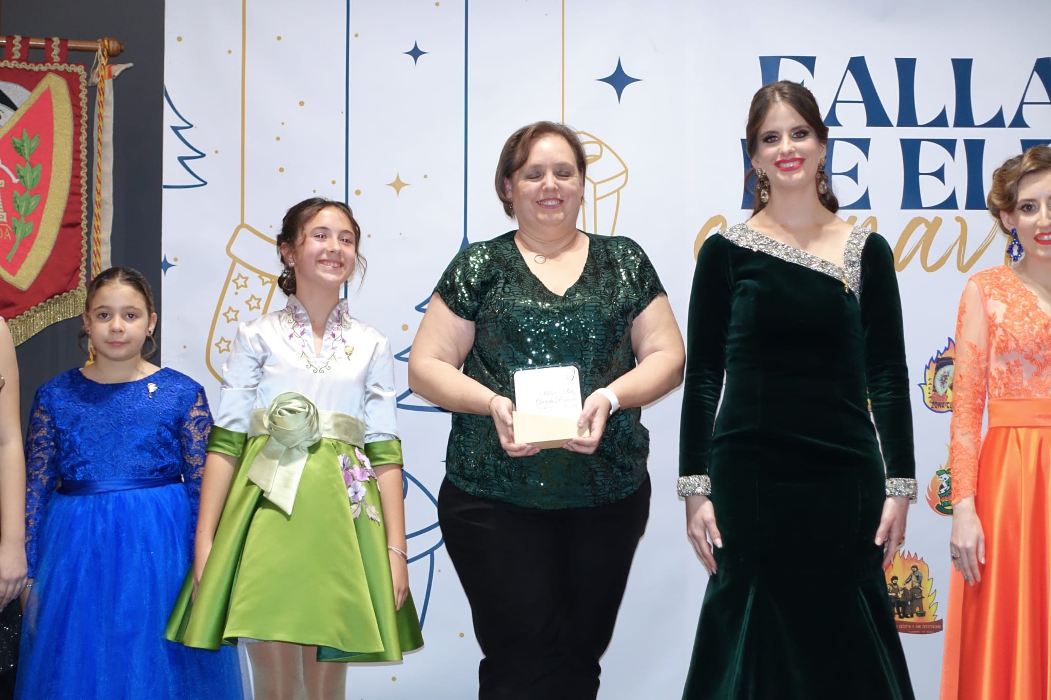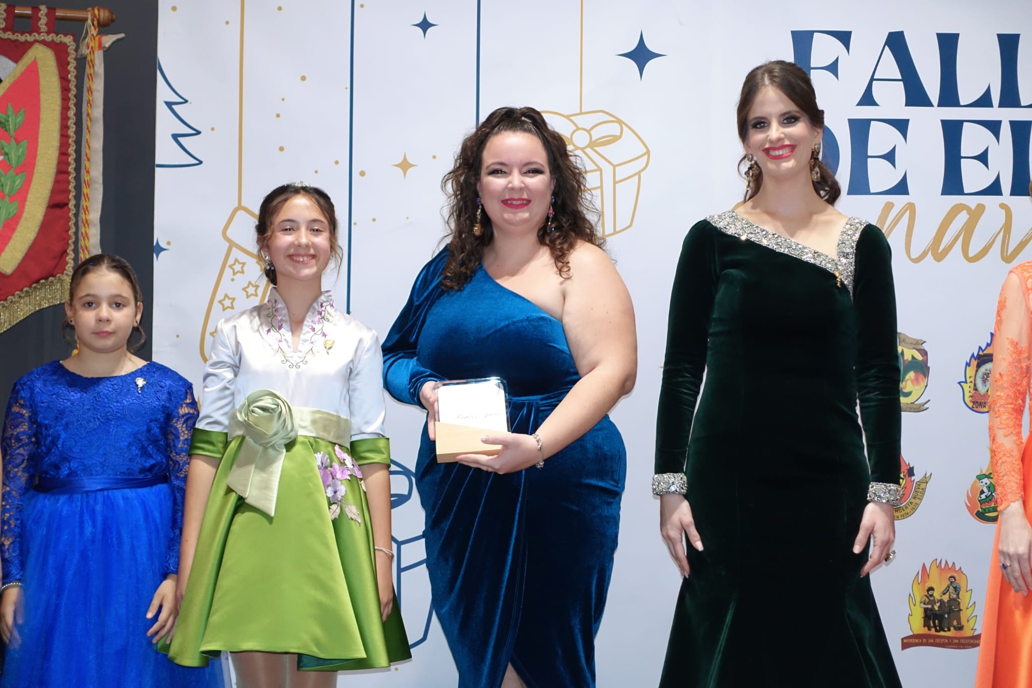 Los galardonados de este año fueron anunciados con gran entusiasmo durante la ceremonia. Las Falleras Mayores de Elda y sus Damas de Honor, quienes, además de ser las encargadas de entregar los galardones, realizaron el brindis con un emotivo mensaje y desearon unas felices fiestas navideñas a todo el mundo fallero.
