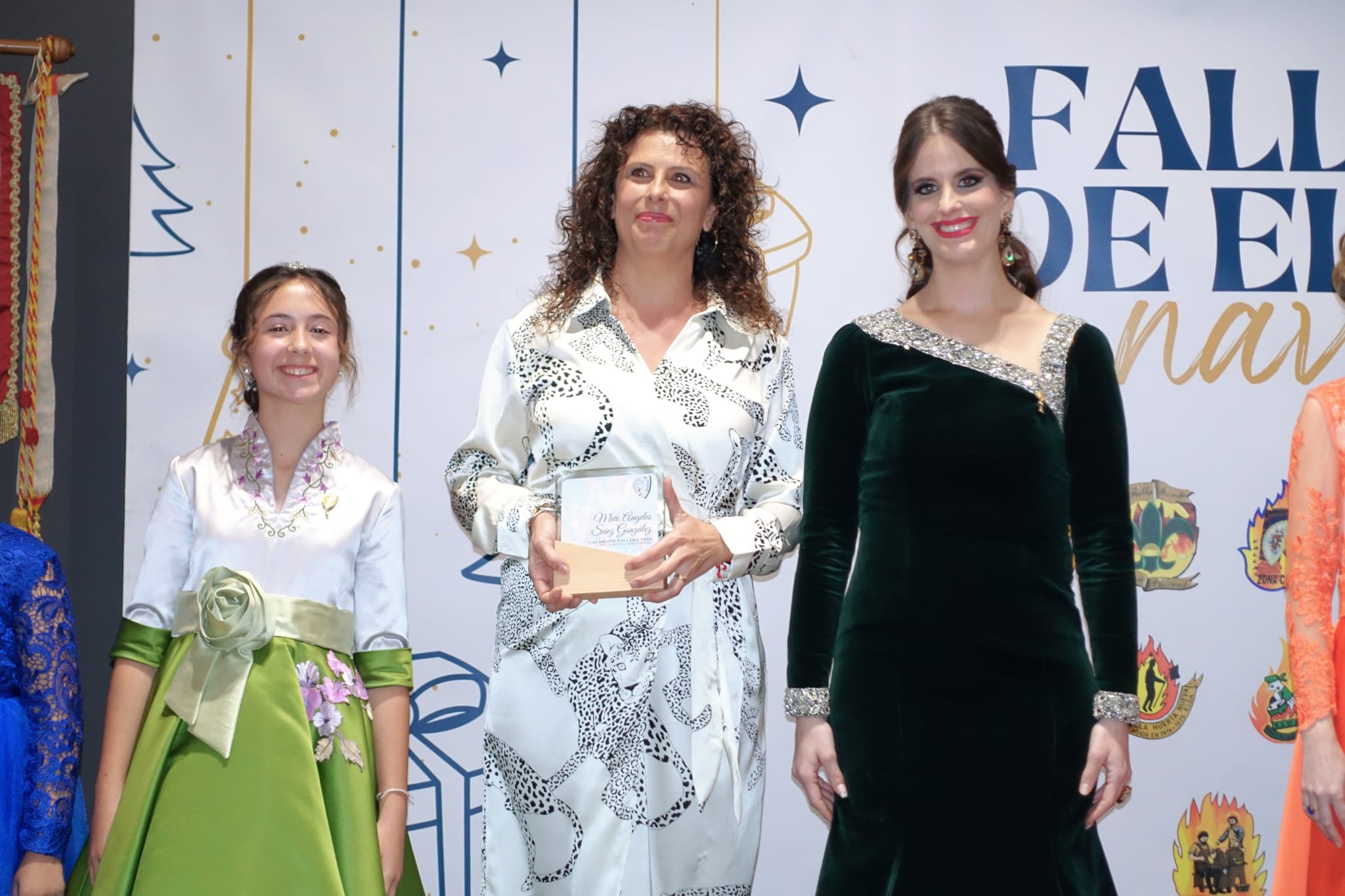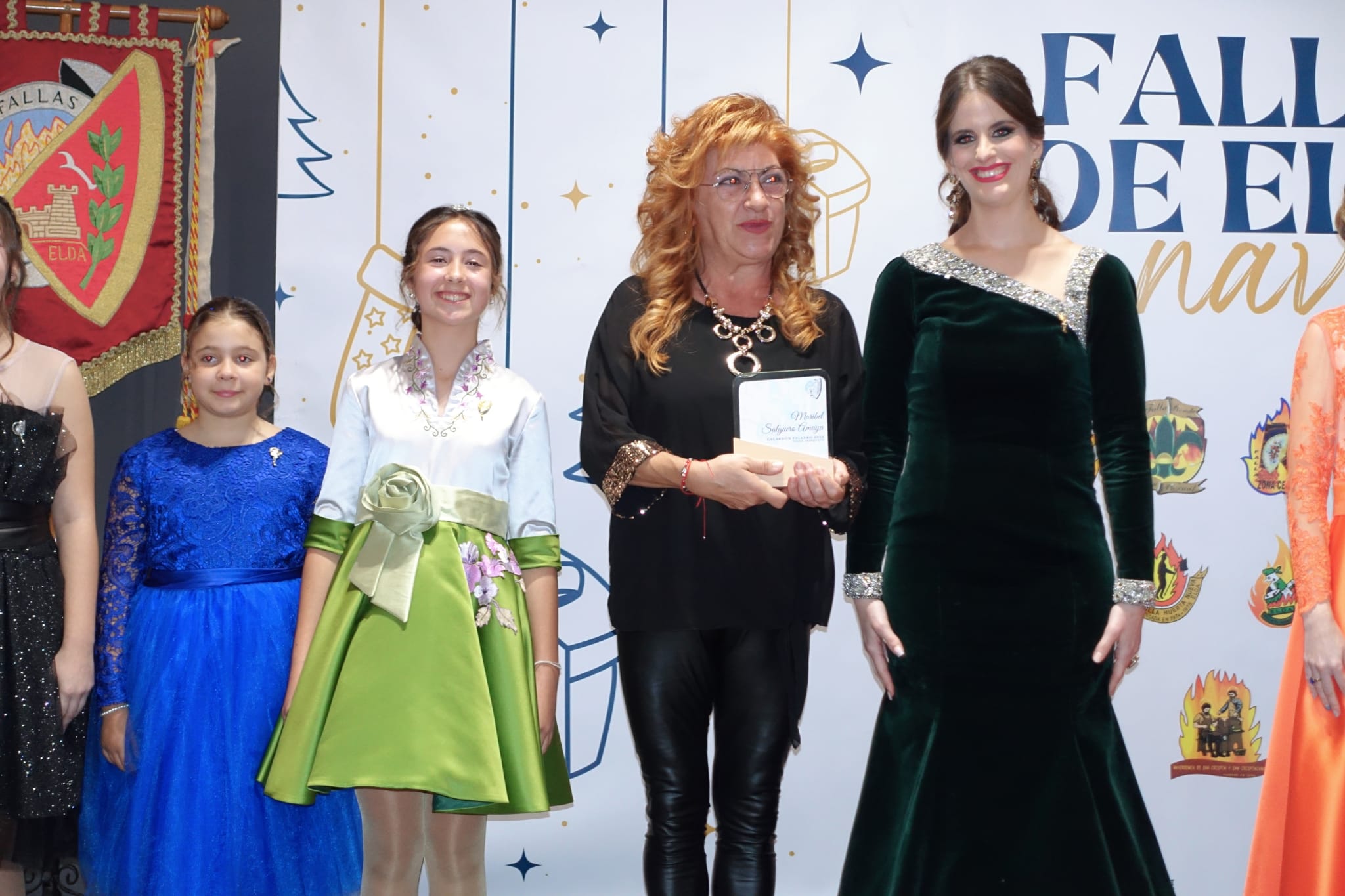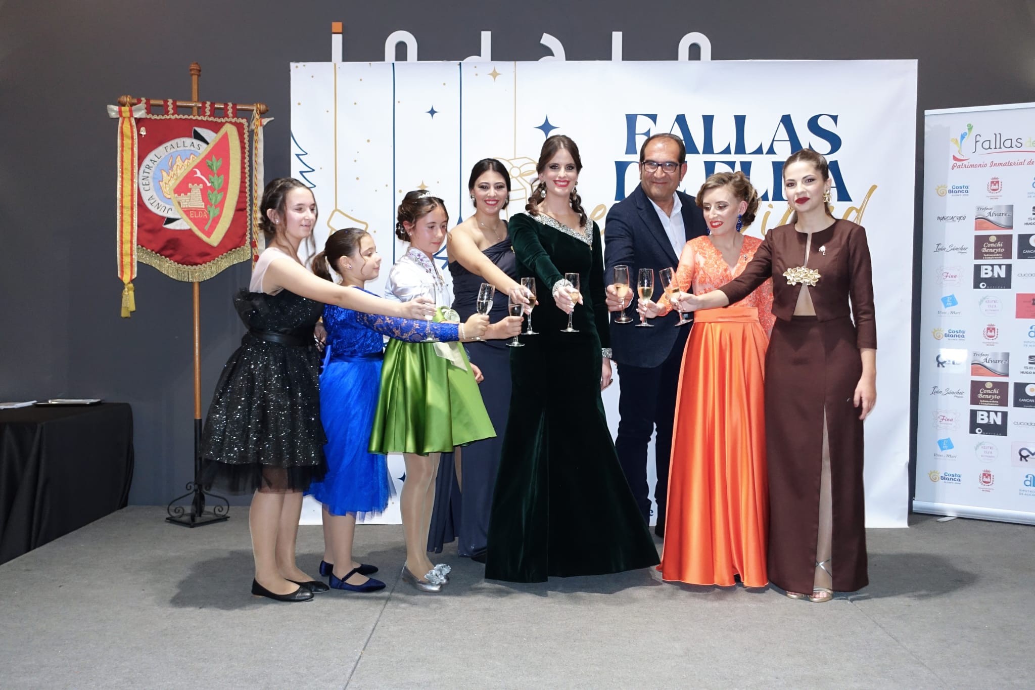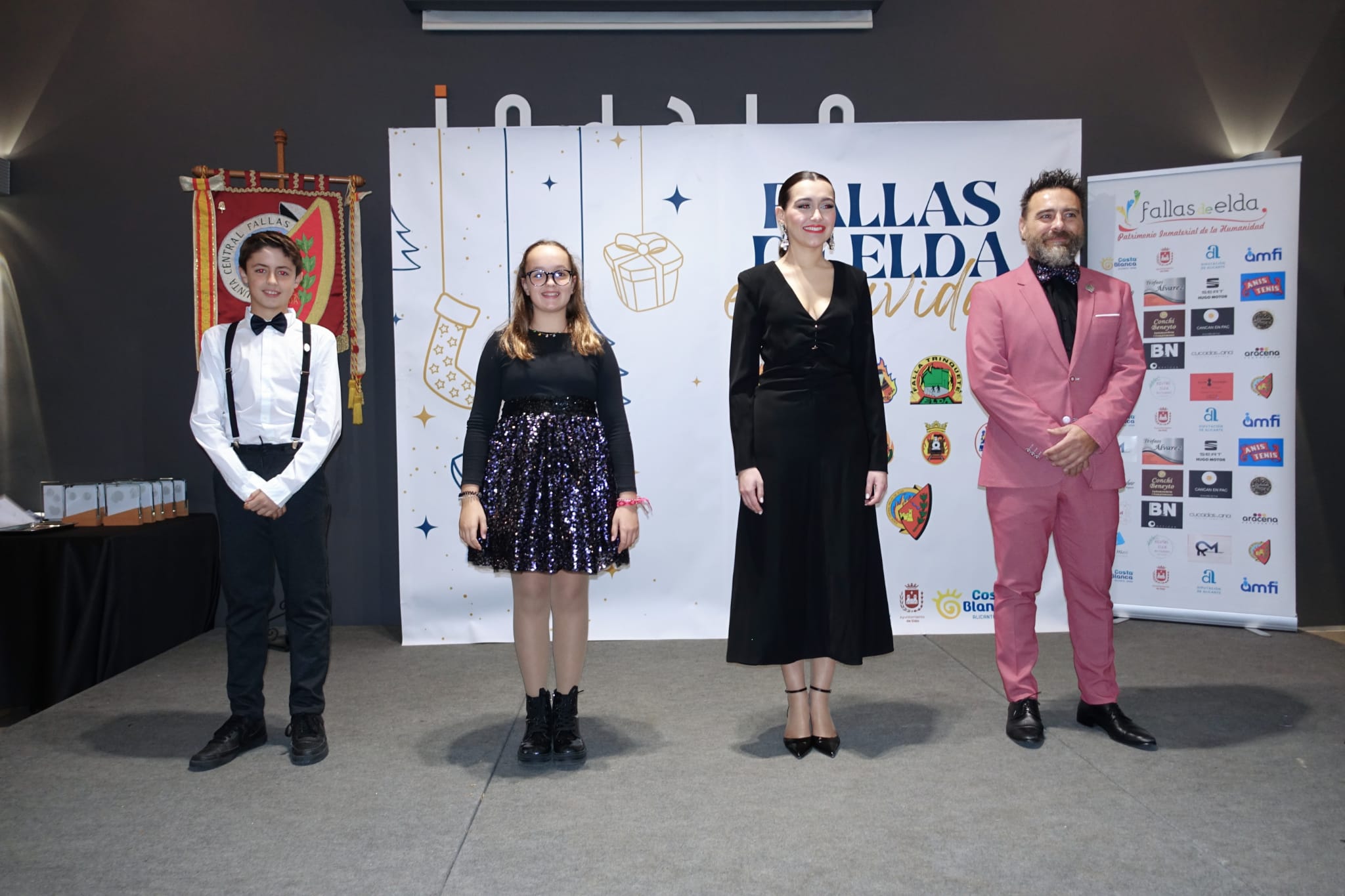 Los galardonados de este año fueron anunciados con gran entusiasmo durante la ceremonia. Las Falleras Mayores de Elda y sus Damas de Honor, quienes, además de ser las encargadas de entregar los galardones, realizaron el brindis con un emotivo mensaje y desearon unas felices fiestas navideñas a todo el mundo fallero.