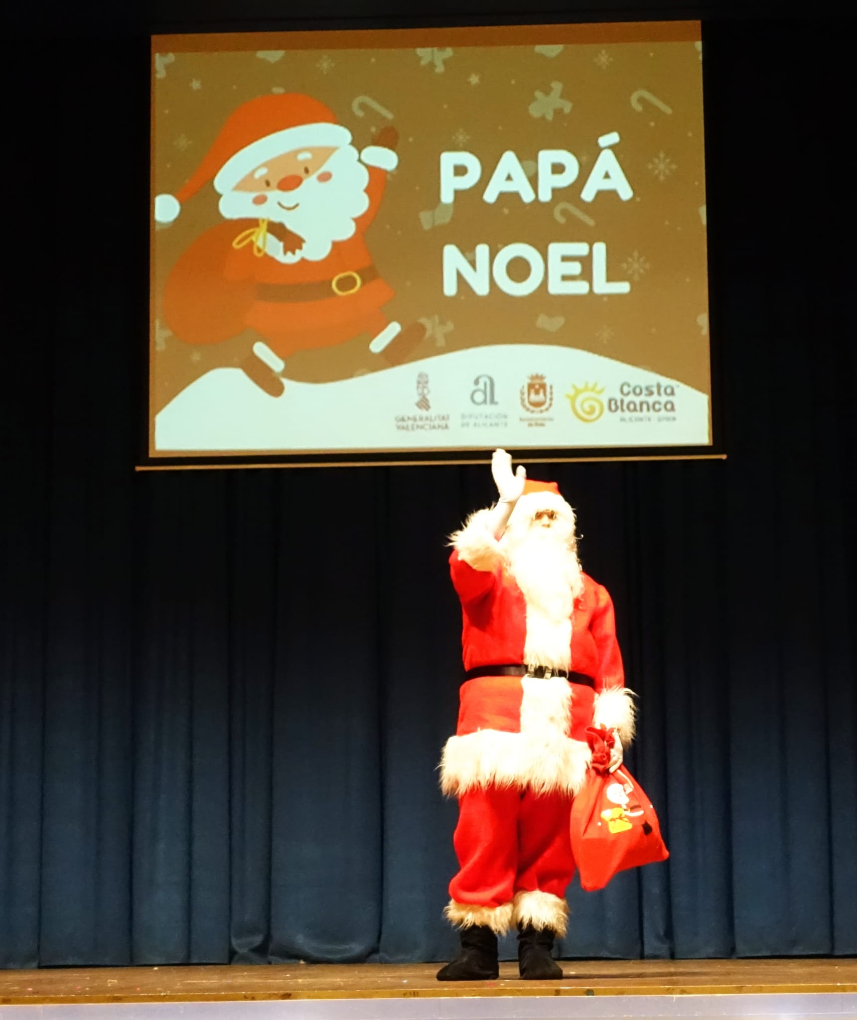 El broche final de la noche no podía ser otro que la visita del querido Papá Noel, quien hizo las delicias de todos los presentes y compartió la magia de la Navidad con los niños y niñas en Auditorio Adoc.